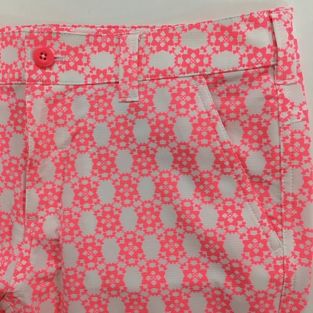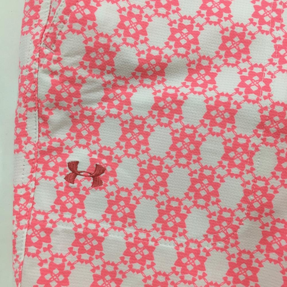【新品】アンダーアーマー パンツ 白×蛍光ピンク 総柄 HEATGEAR レディース MD ゴルフウェア UNDER ARMOUR