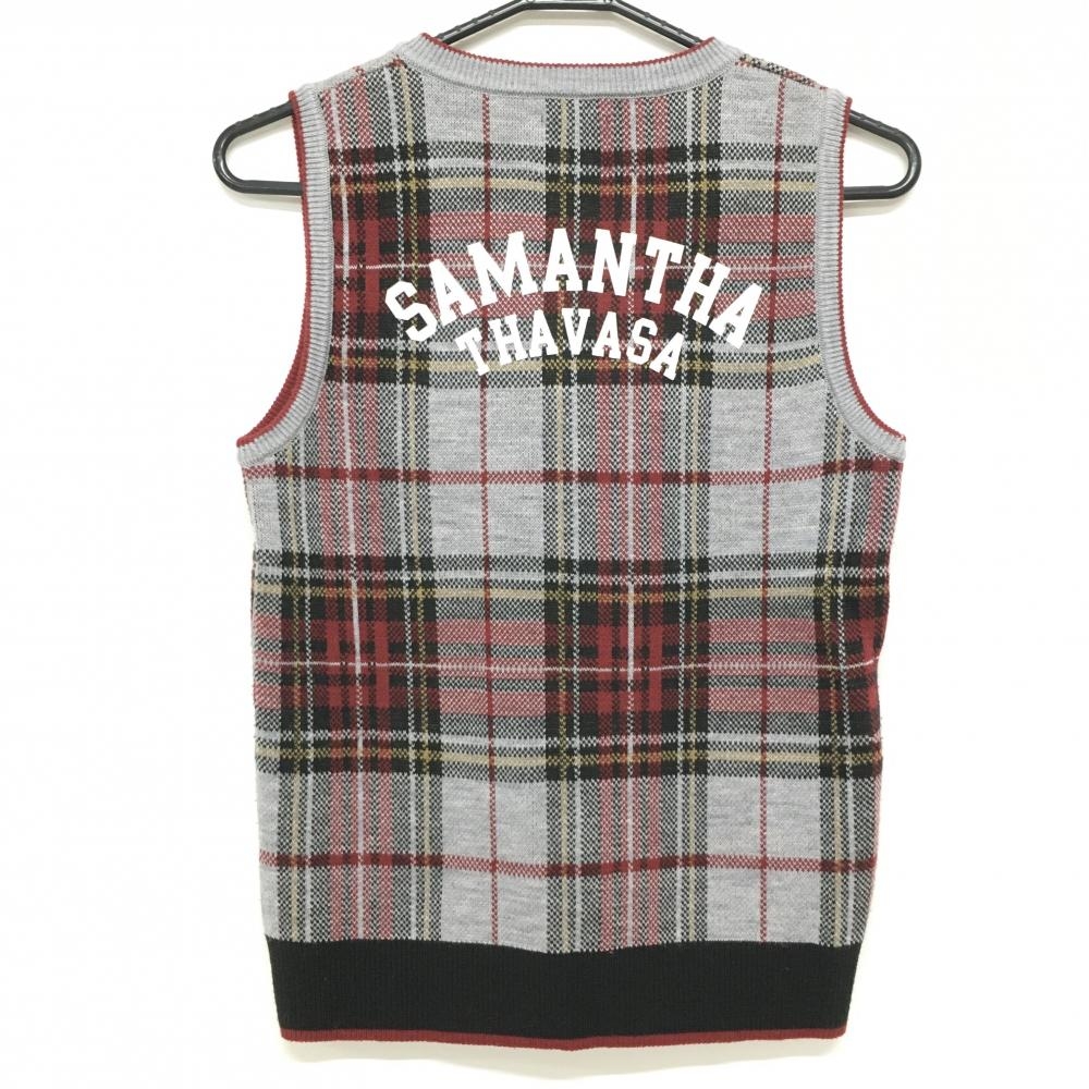【美品】サマンサタバサNo.7 ニットベスト 黒×レット Vネック チェック レディース 38(M) ゴルフウェア Samantha Thavasa