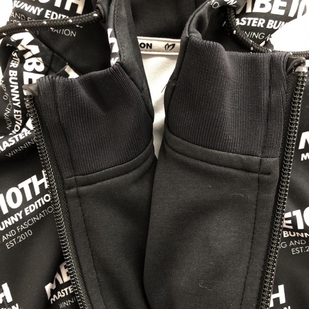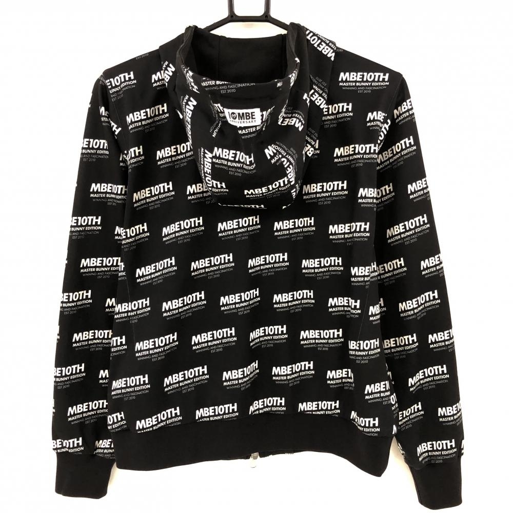 【美品】マスターバニー ジップパーカー 黒×白 ロゴ総柄 10周年 ブルゾン レディース 0(S) ゴルフウェア MASTER BUNNY EDITION