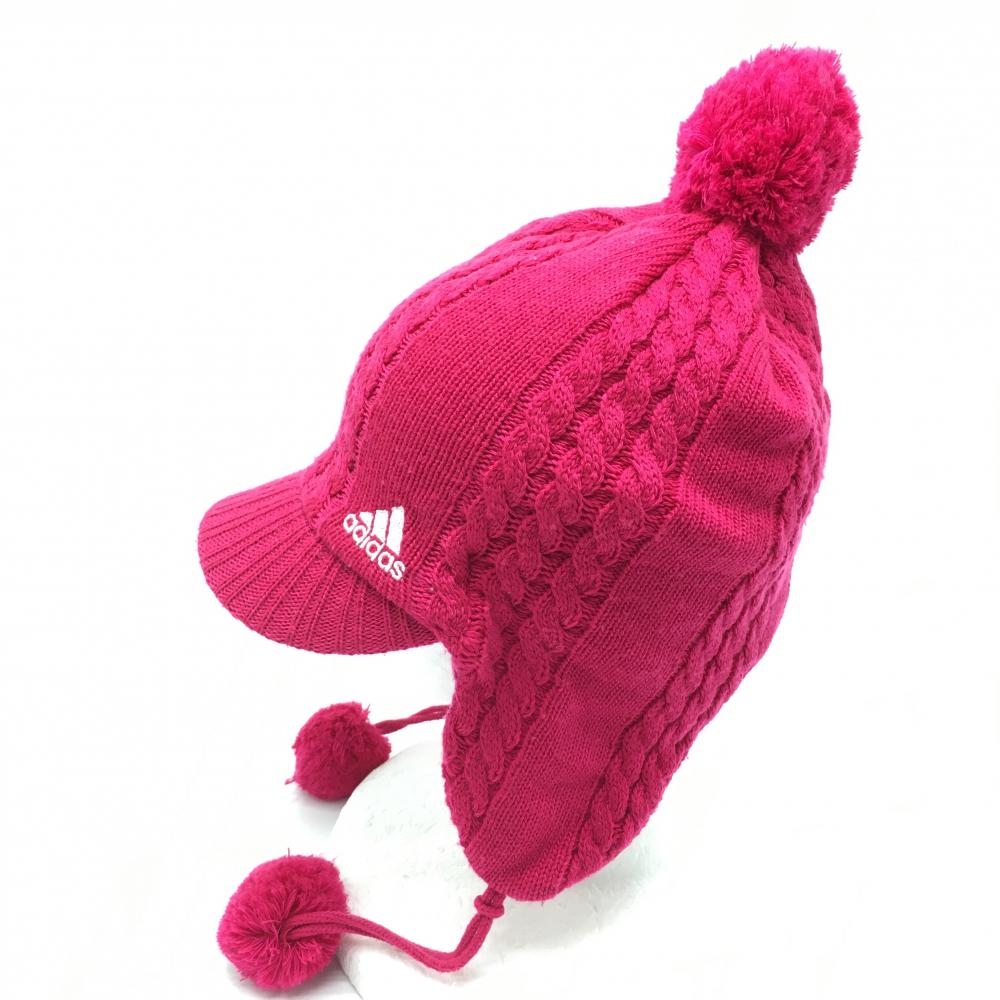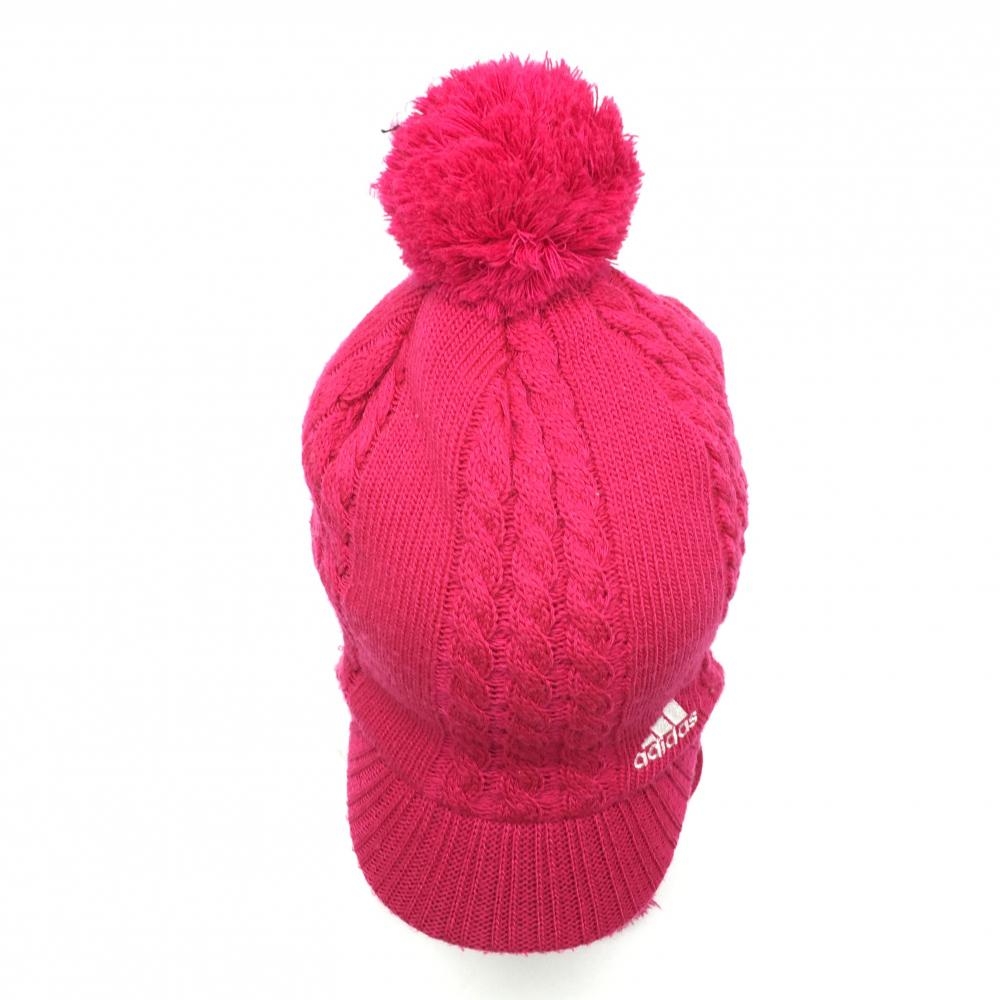 アディダス つば付きニット帽 レッドピンク ボンボン・耳当て付き フリー(56-58cm) ゴルフウェア adidas