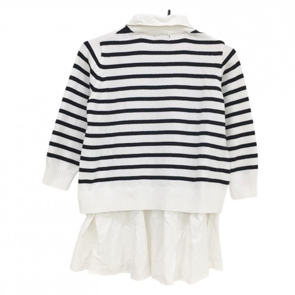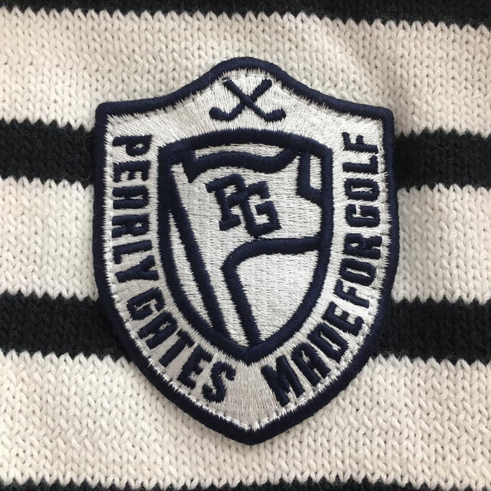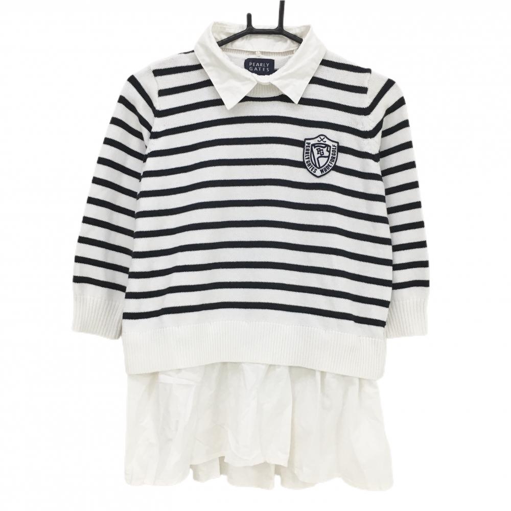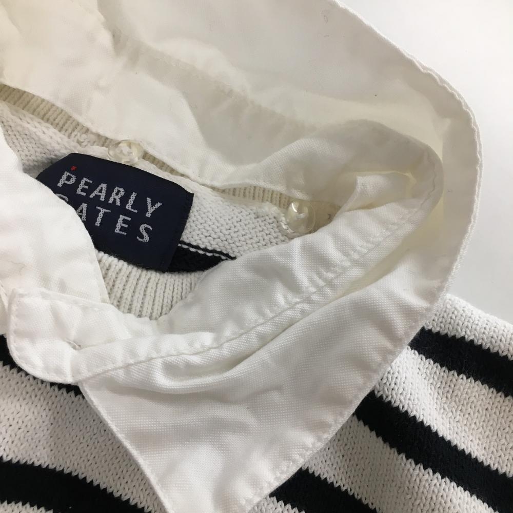 【美品】パーリーゲイツ 半端丈セーター 白×黒 ボーダー 襟・裾着脱可 コットン混 ニット レディース 0(S) ゴルフウェア PEARLY GATES