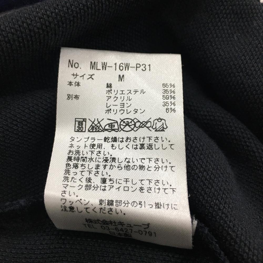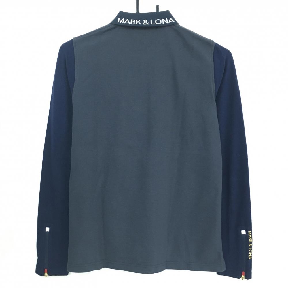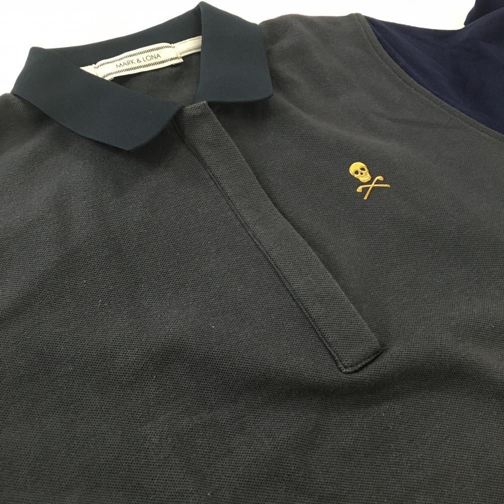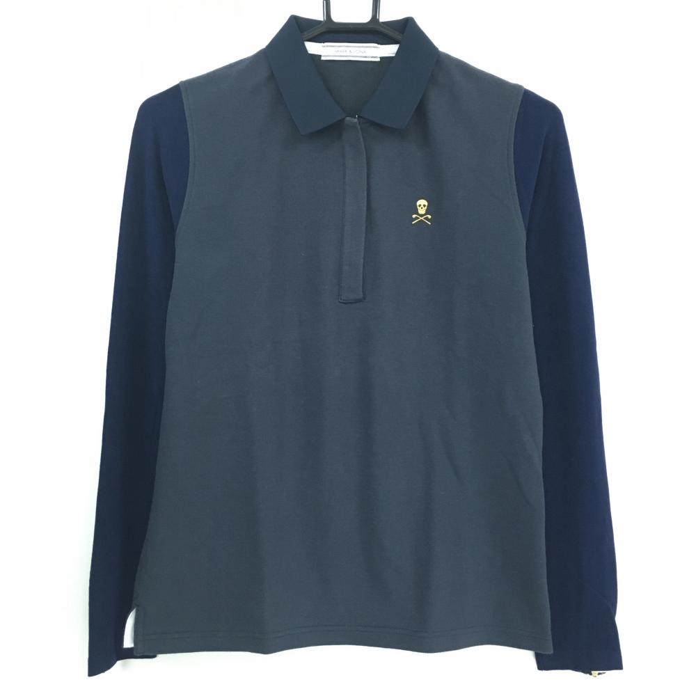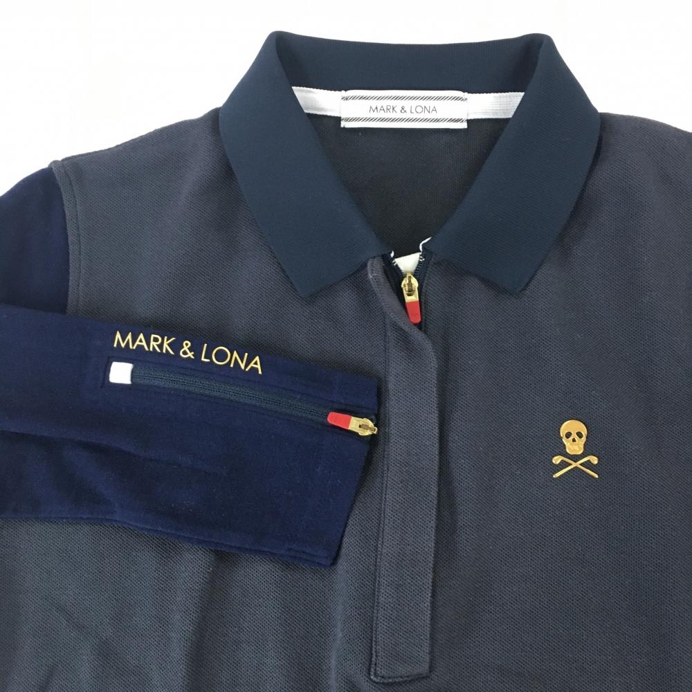 マークアンドロナ 異素材長袖ポロシャツ ネイビー スカル 袖微起毛素材 レディース M ゴルフウェア MARK&LONA