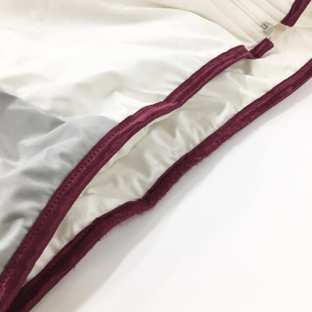 マリクレール 中綿ジャケット 白×ボルドー ネック内側フリース地 ロゴワッペン レディース L ゴルフウェア marie claire