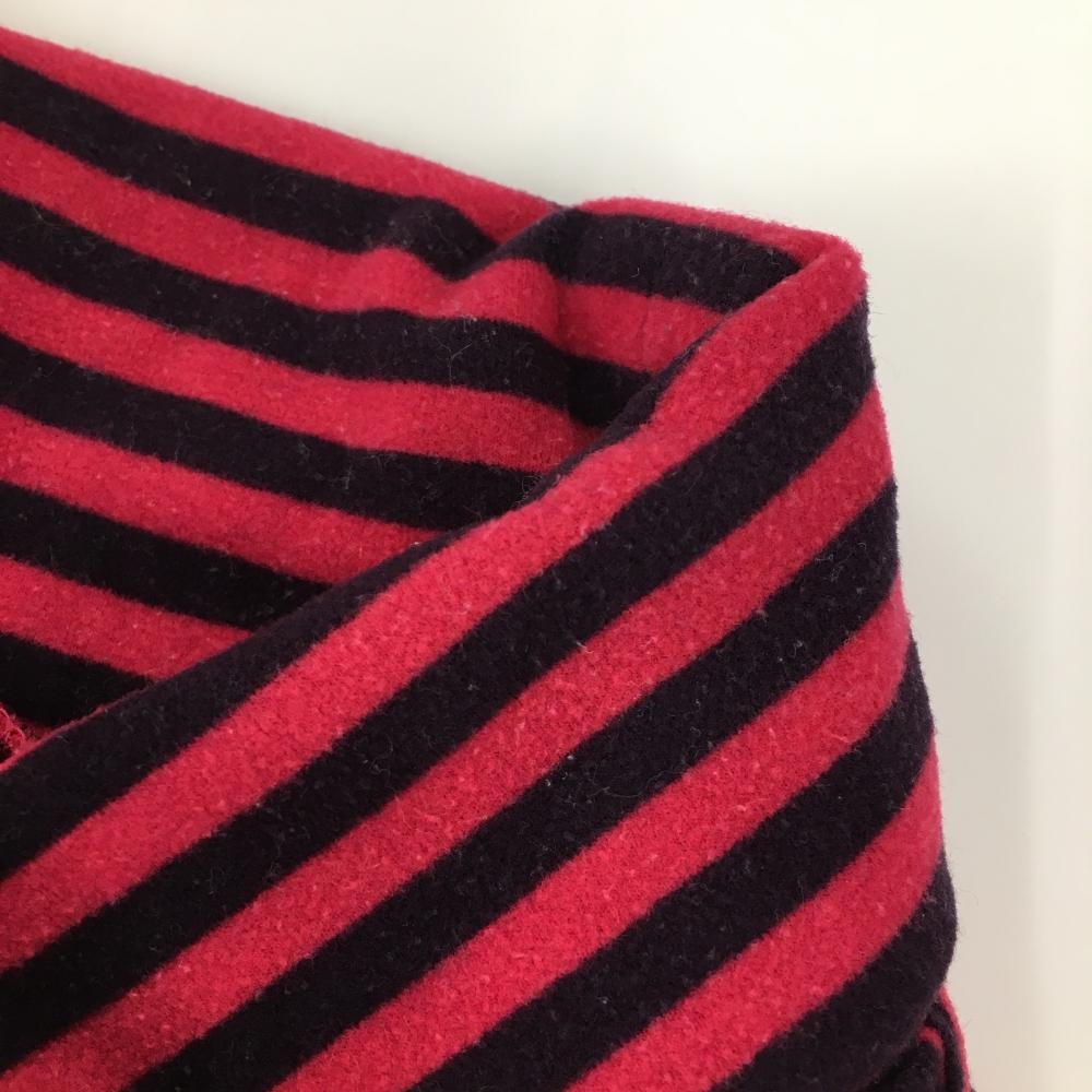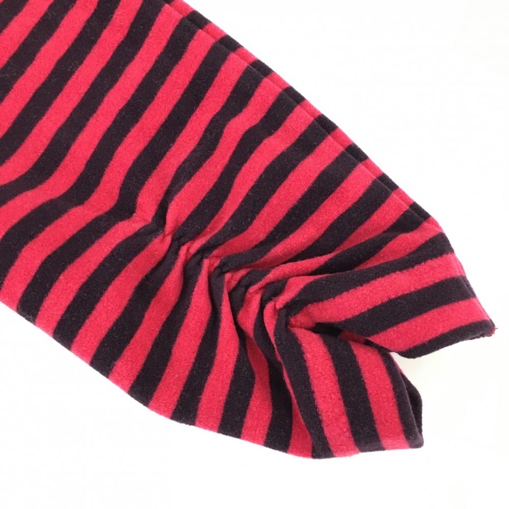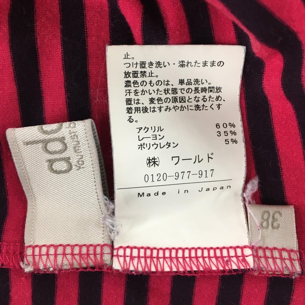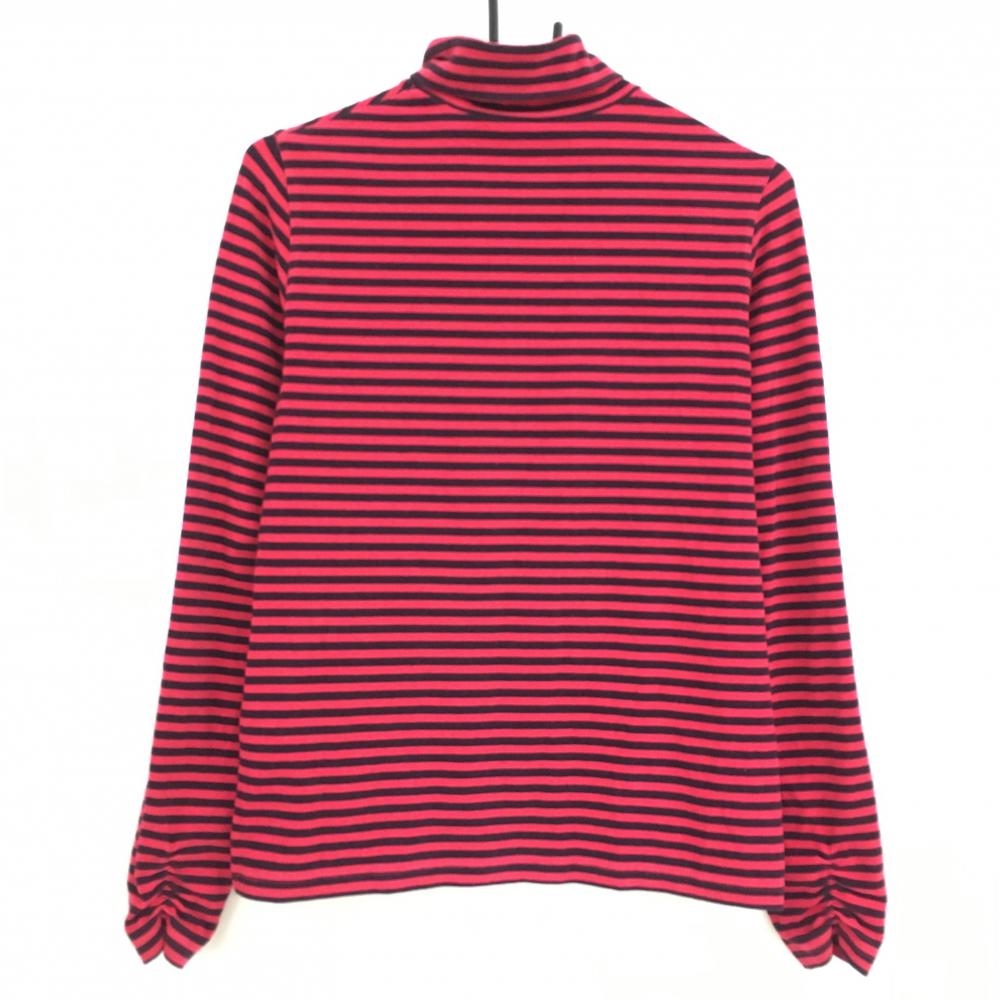 【美品】アダバット 長袖ハイネックシャツ レッド系×黒 ボーダー 表微起毛 アクリル混 レディース 38(M) ゴルフウェア adabat