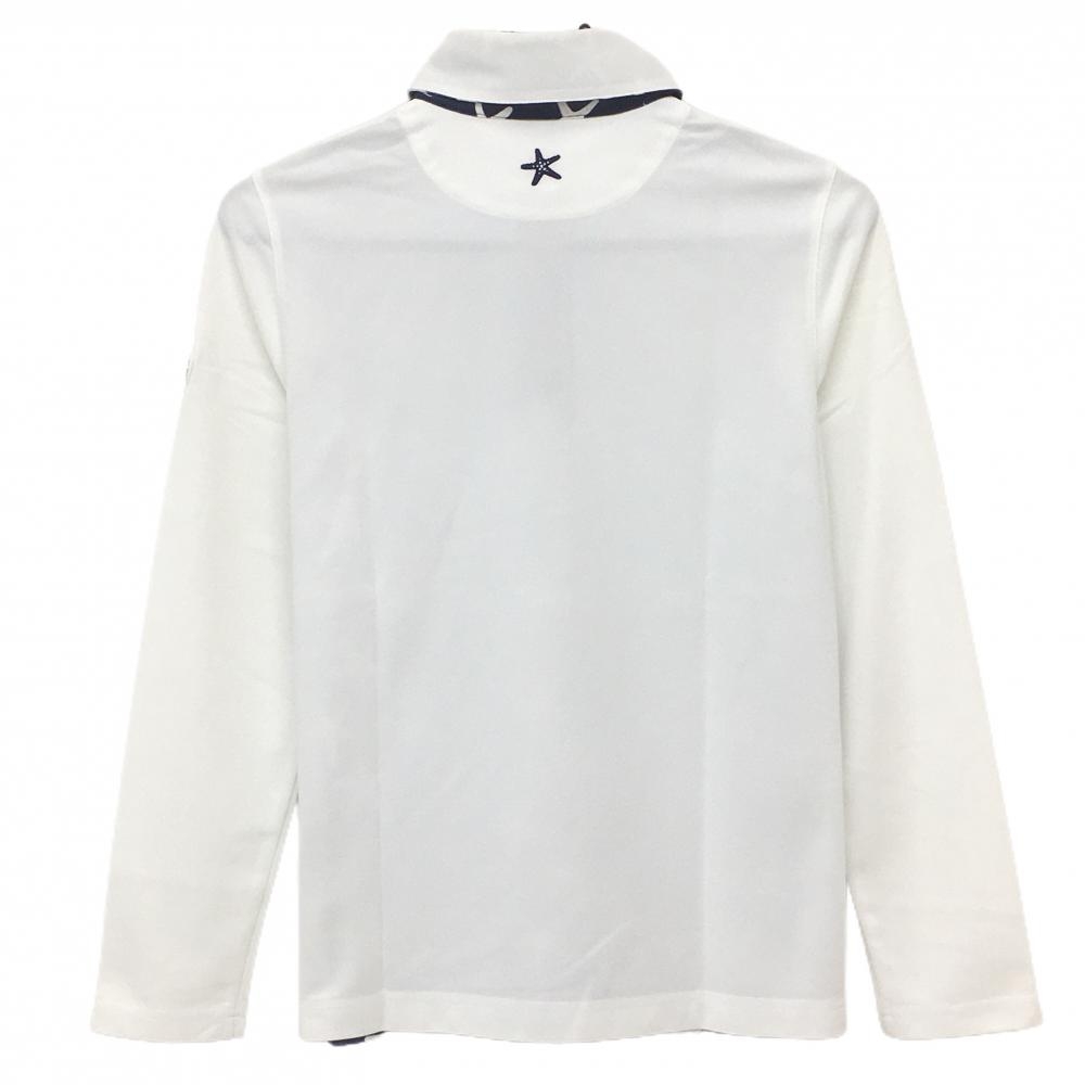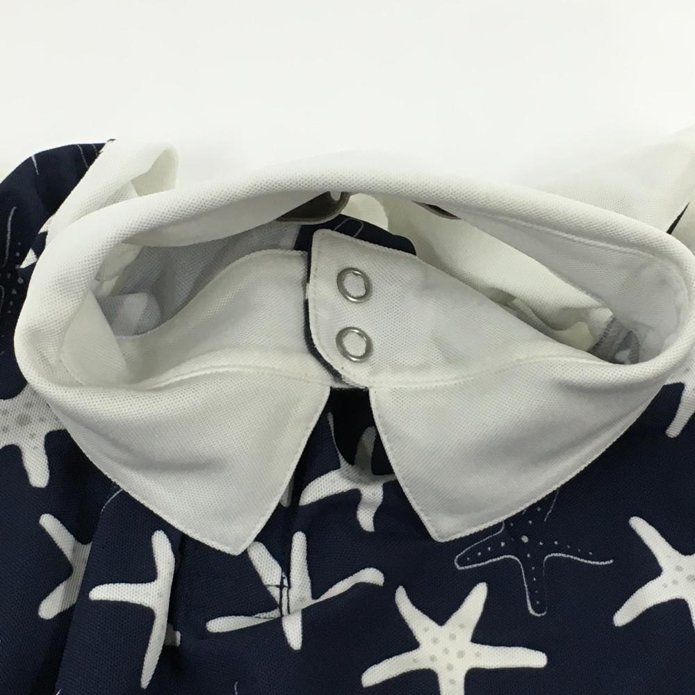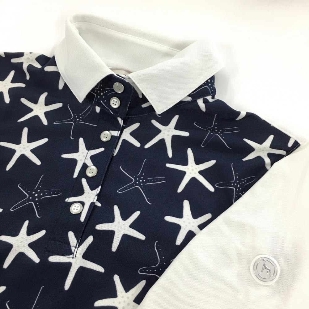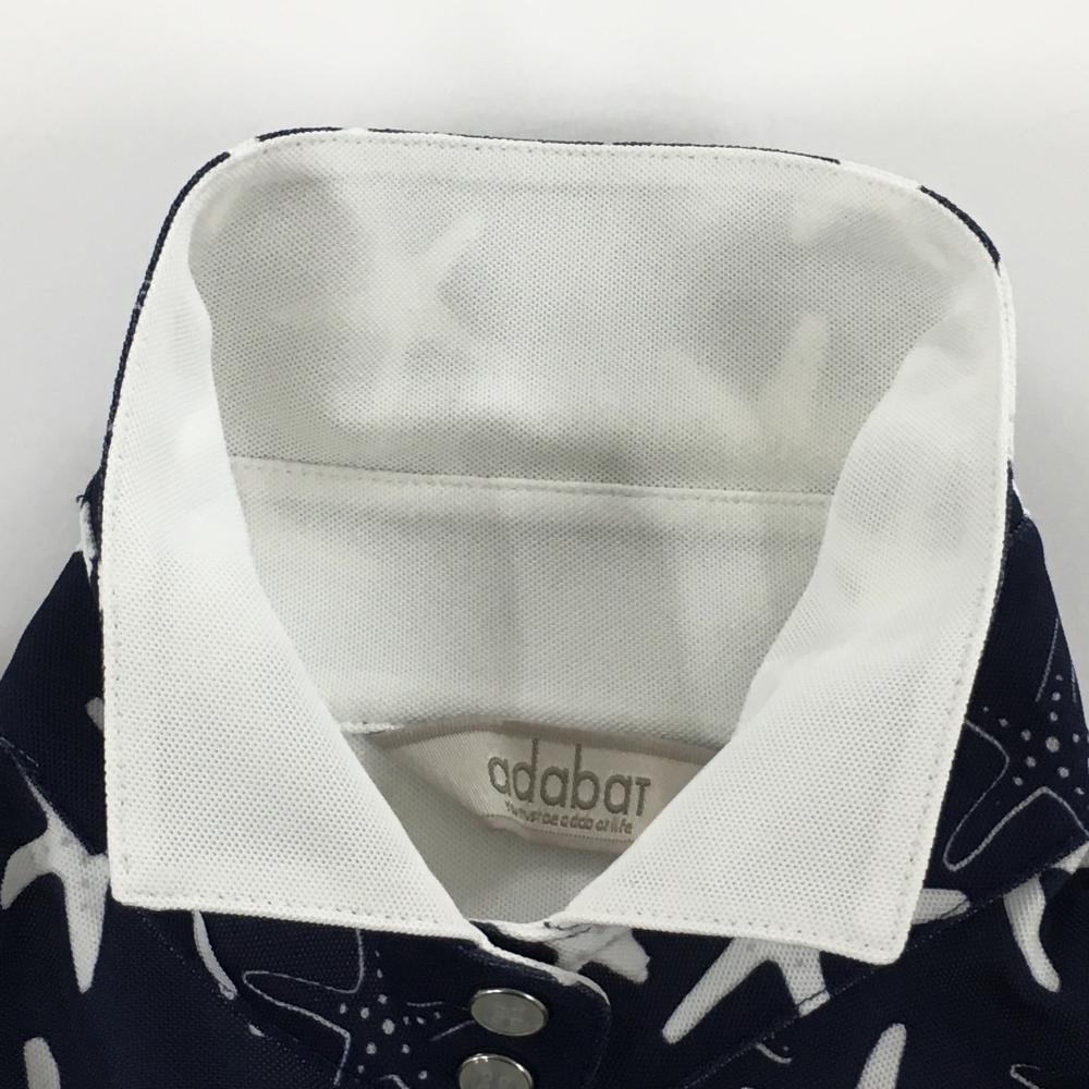 【美品】アダバット 長袖ポロシャツ ネイビー×白 前身頃ヒトデ柄 スナップボタン レディース 38(M) ゴルフウェア adabat