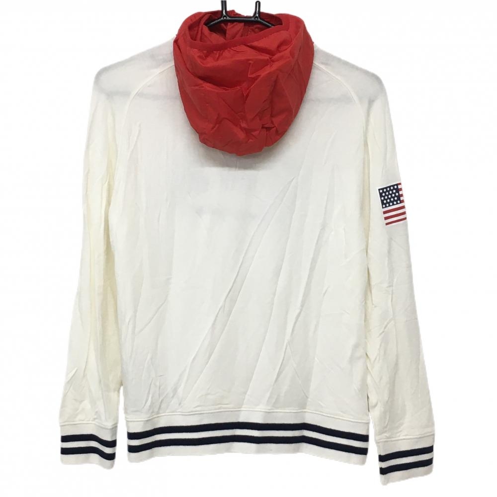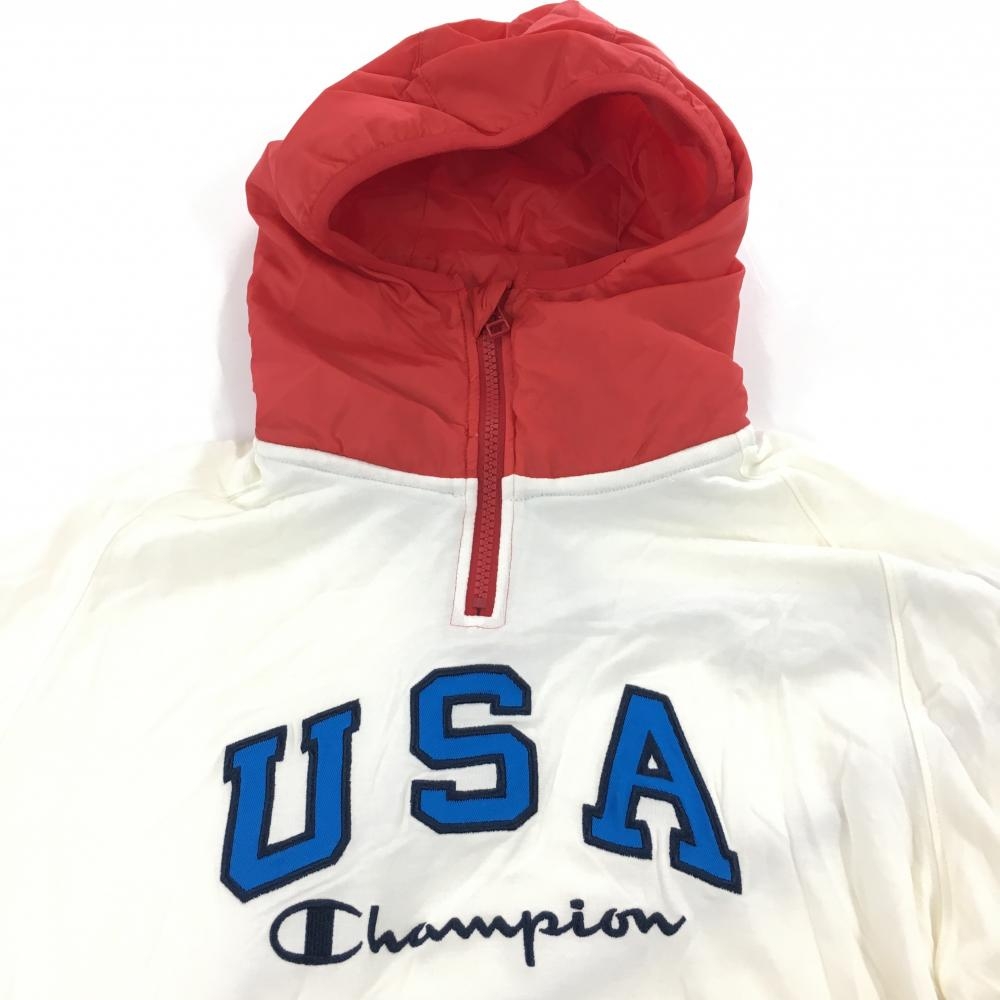【超美品】チャンピオン パーカー 白×レッド ハーフジップ フード中綿 レディース MEDIUM ゴルフウェア Champion