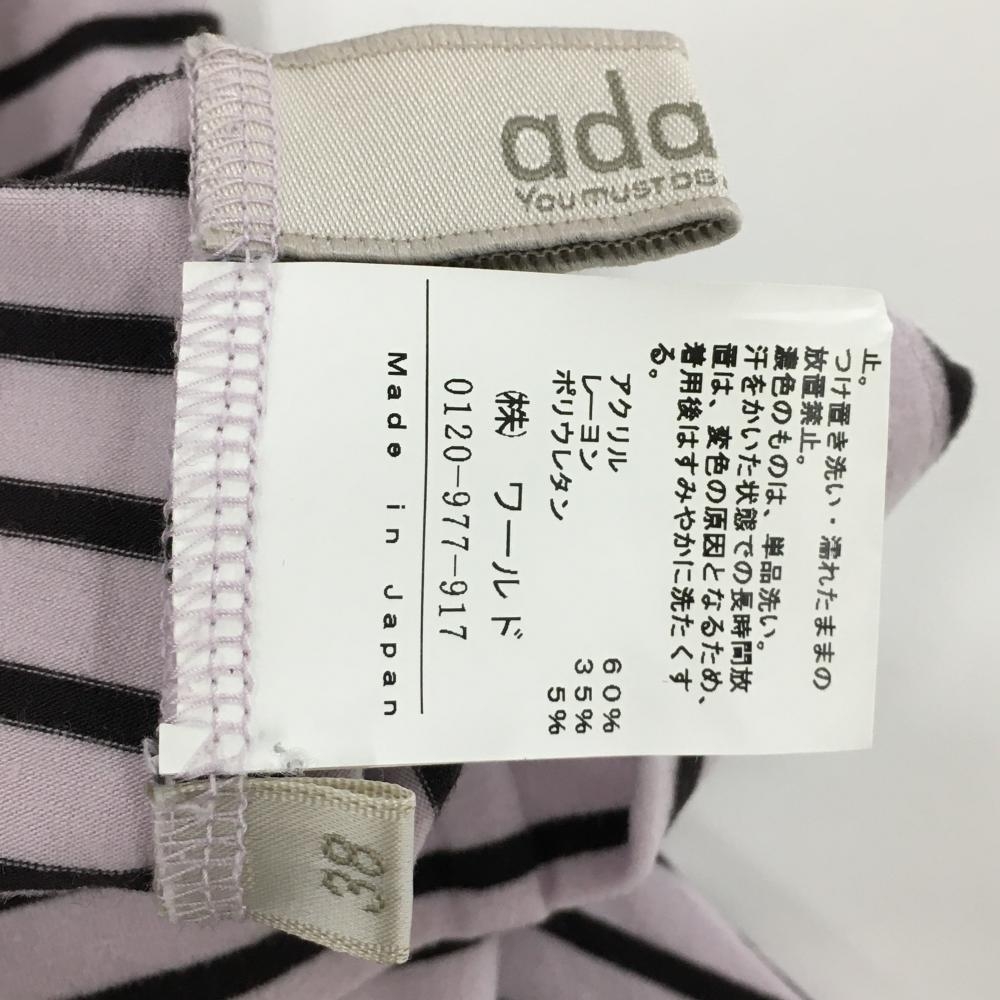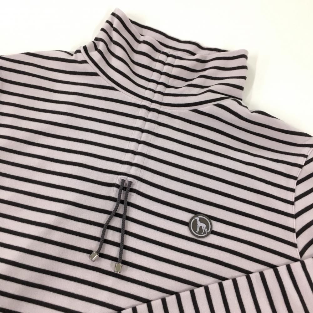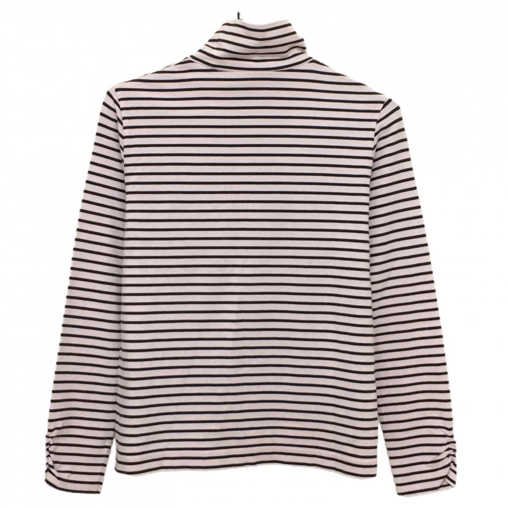 【超美品】アダバット 長袖ハイネックシャツ ライトピンク×黒 ボーダー 表微起毛 アクリル混 レディース 38(M) ゴルフウェア adabat