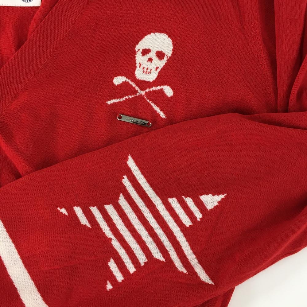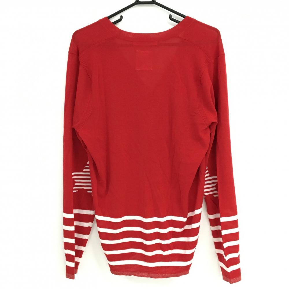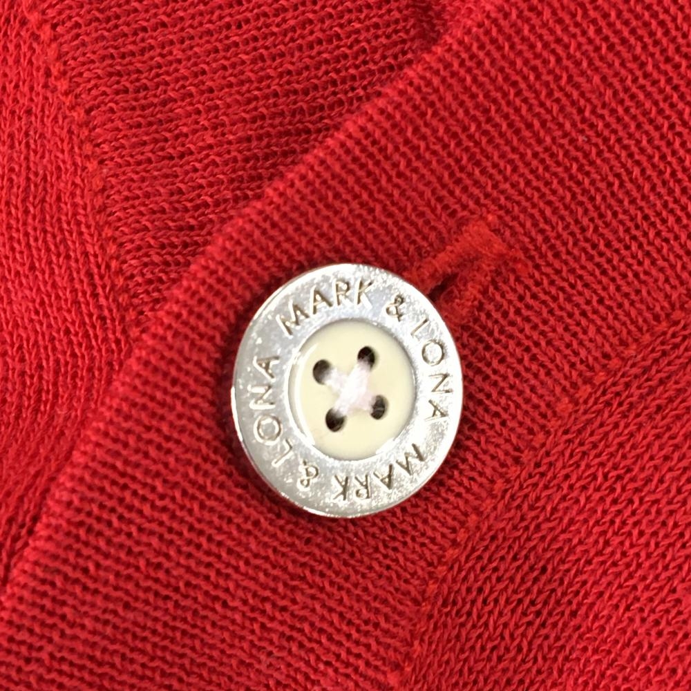 【超美品】マークアンドロナ カーディガン レッド×白 裾ボーダー 薄手 メンズ XL ゴルフウェア MARK&LONA