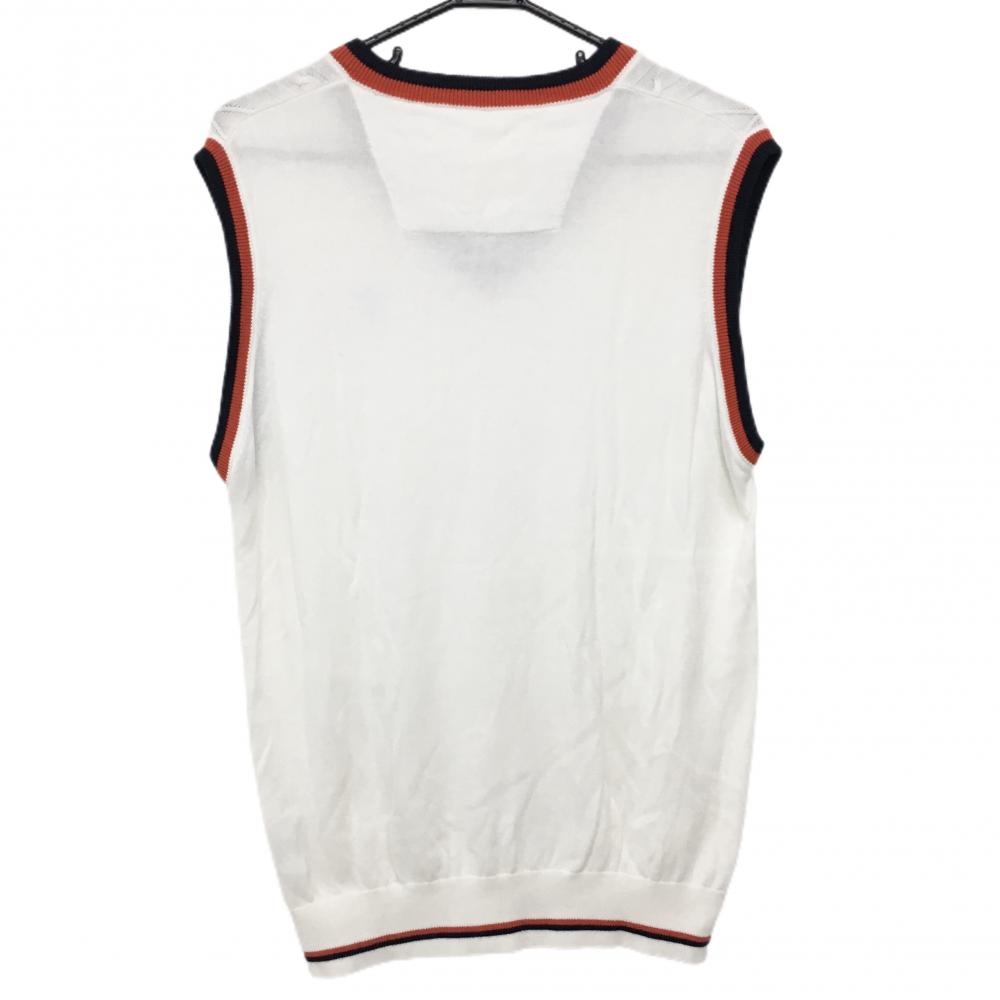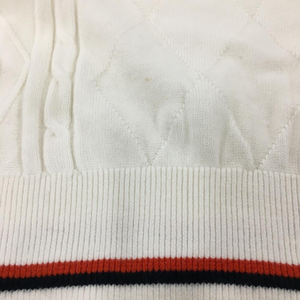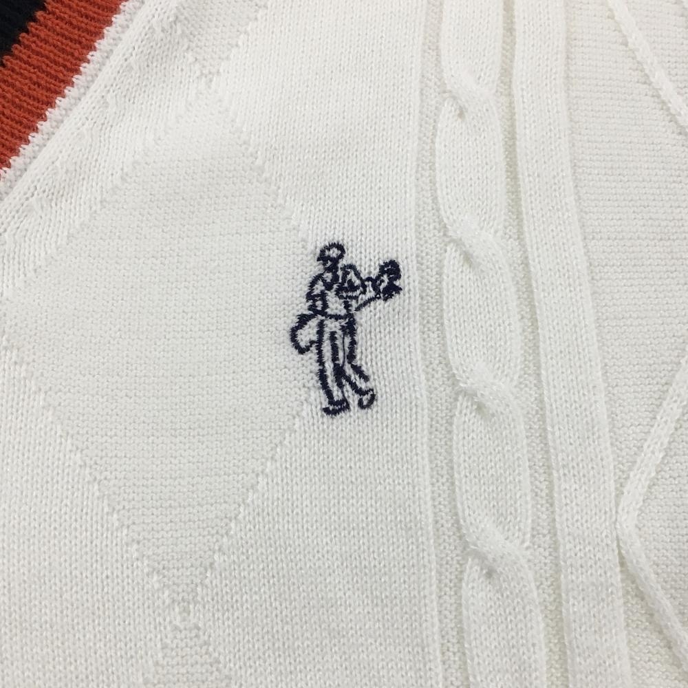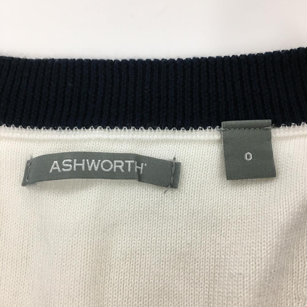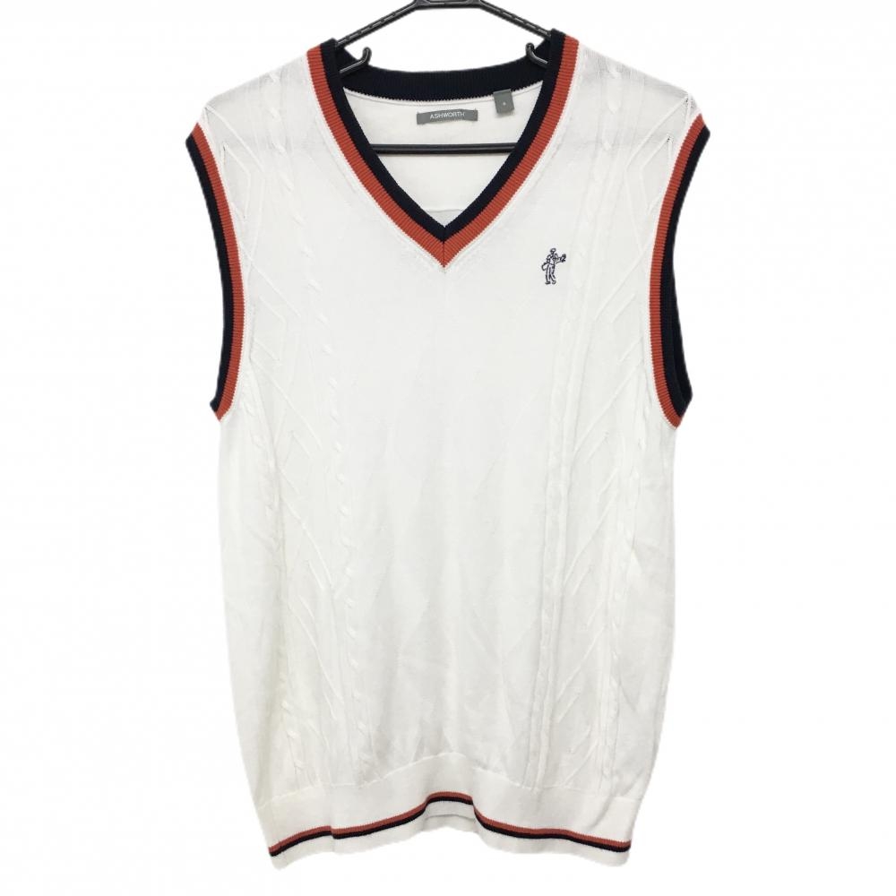 【美品】アシュワース ニットベスト 白×ネイビー ケーブル編み Vネック メンズ O ゴルフウェア ASHWORTH