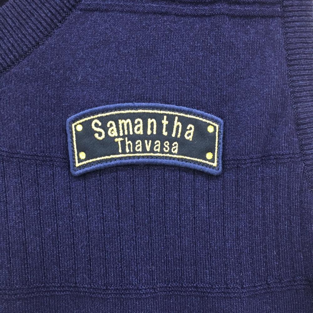 【超美品】サマンサタバサNo.7 ニットベスト ネイビー×白 ボーダー調 レディース 40(L) ゴルフウェア Samantha Thavasa