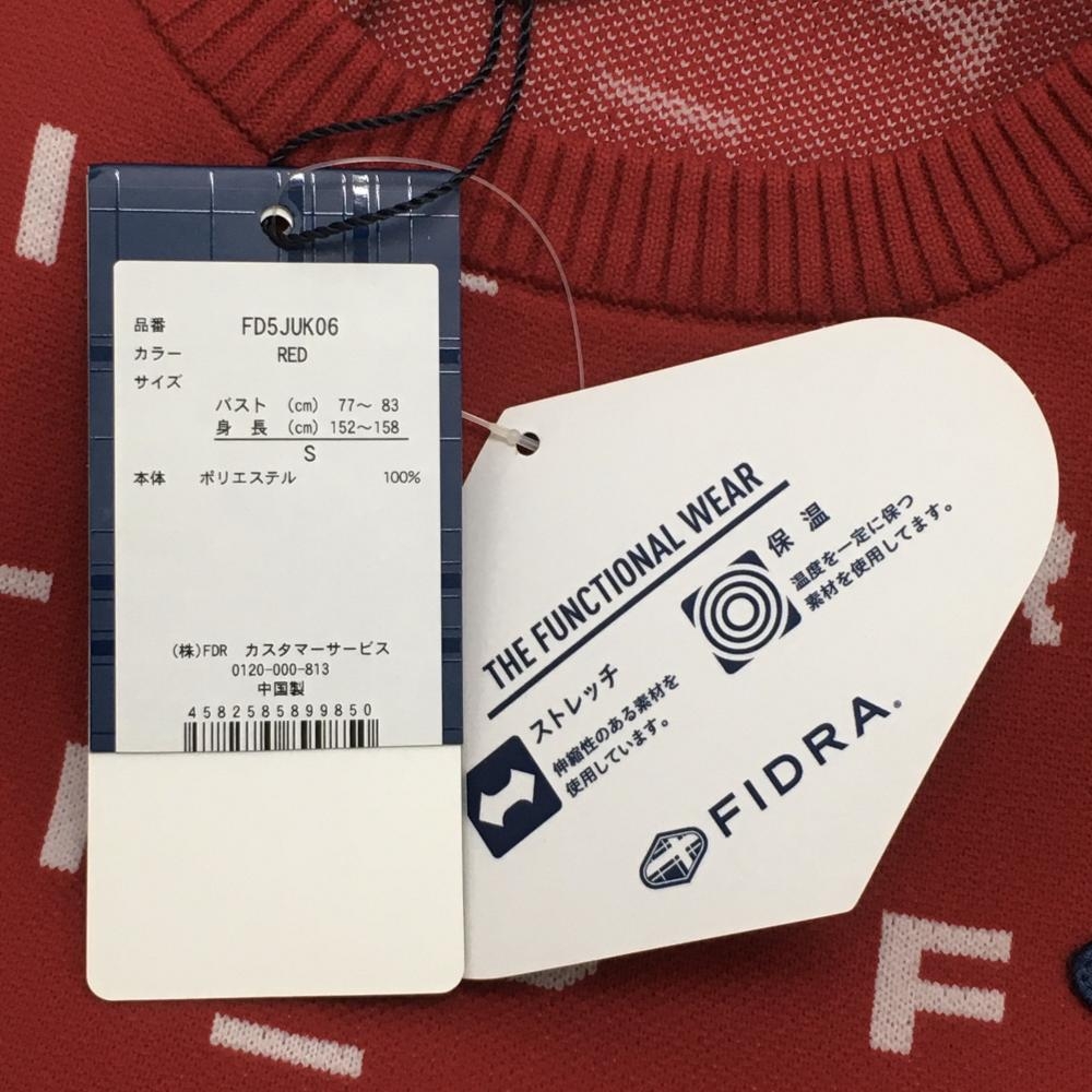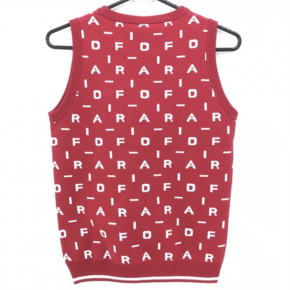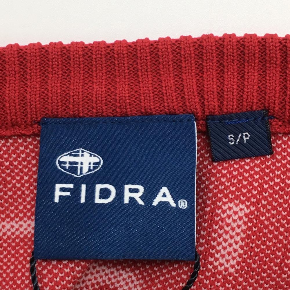 【新品】フィドラ ニットベスト レッド×白 ロゴ総柄 ストレッチ 保温 レディース S/P ゴルフウェア FIDRA