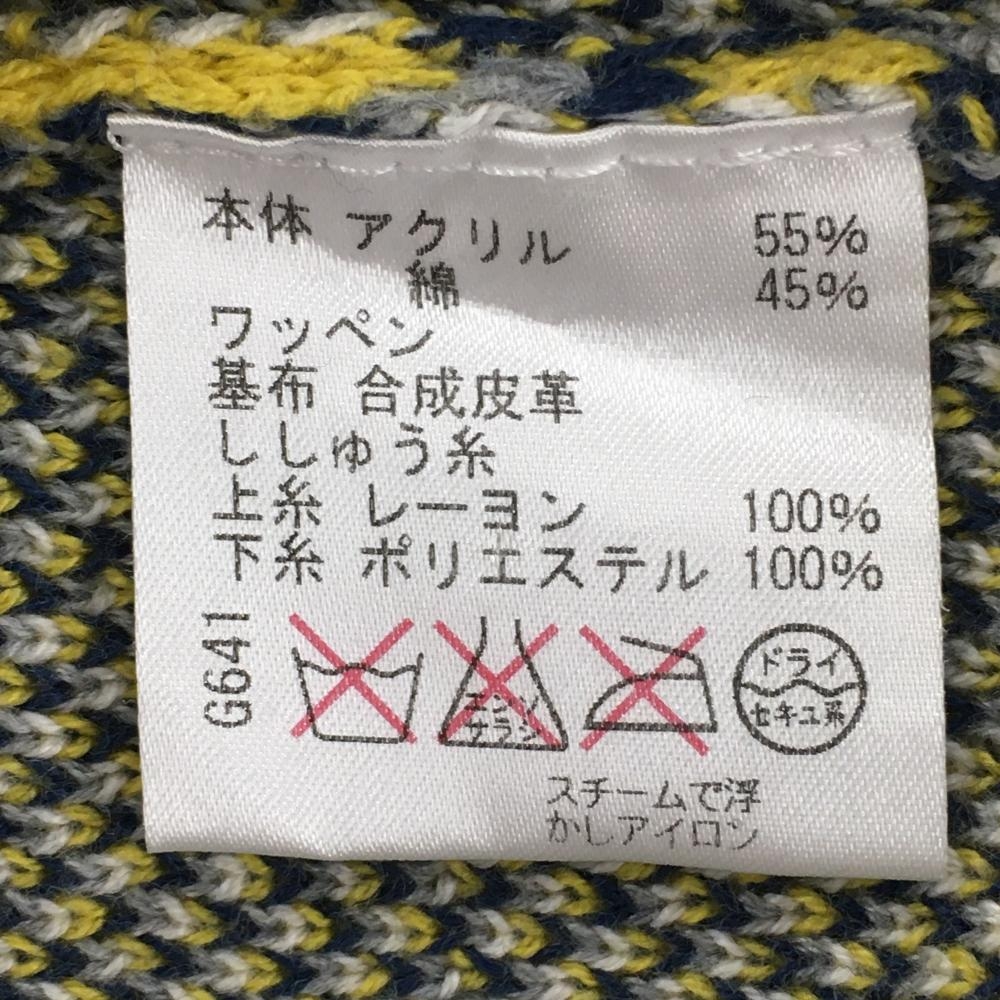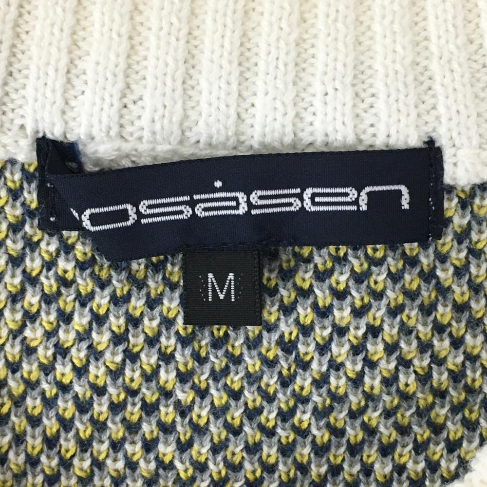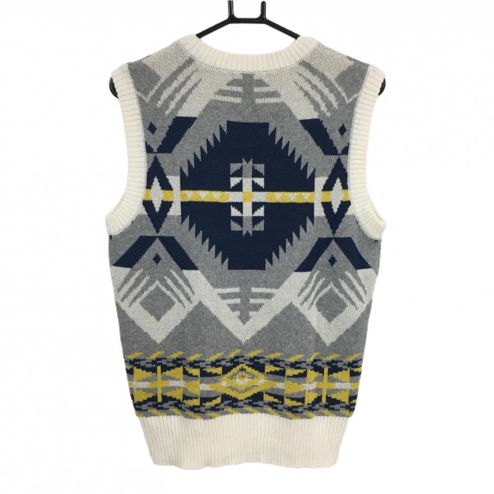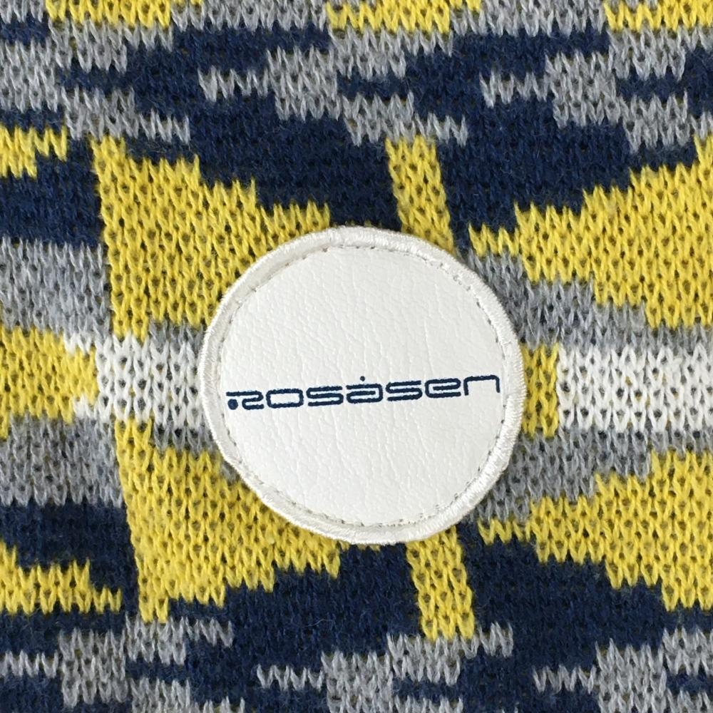 【超美品】ロサーセン ニットベスト グレー×ネイビー 総柄 アクリル混 Vネック メンズ M ゴルフウェア Rosasen