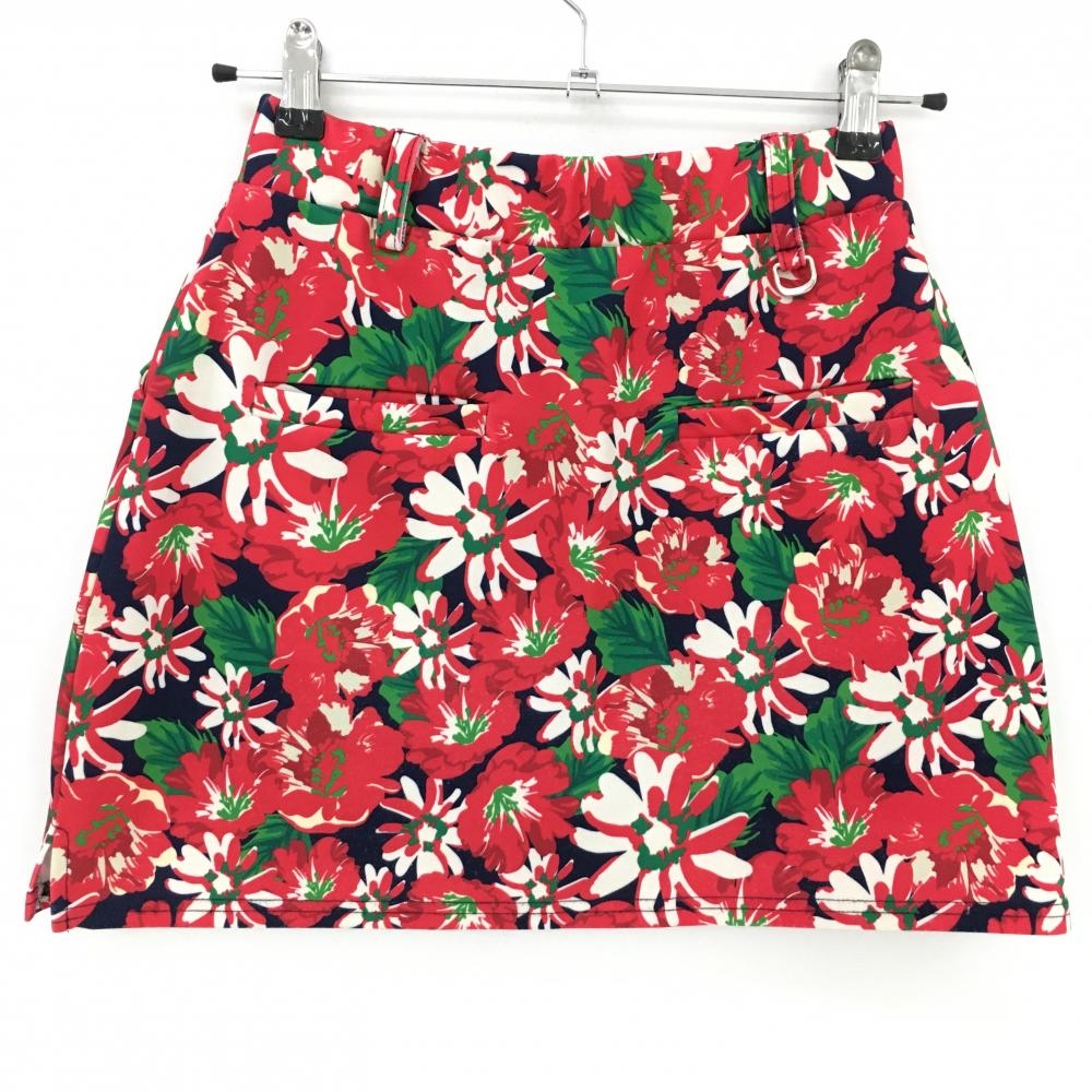 デルソル スカート レッド×グリーン 花柄 内側インナーパンツ レディース M ゴルフウェア DELSOL