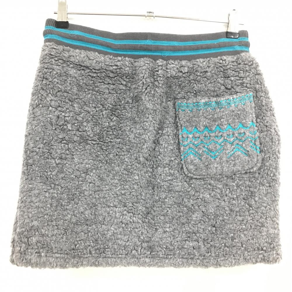 ロサーセン ボアスカート グレー×ターコイズブルー ウール混 裏地付 レディース L ゴルフウェア Rosasen