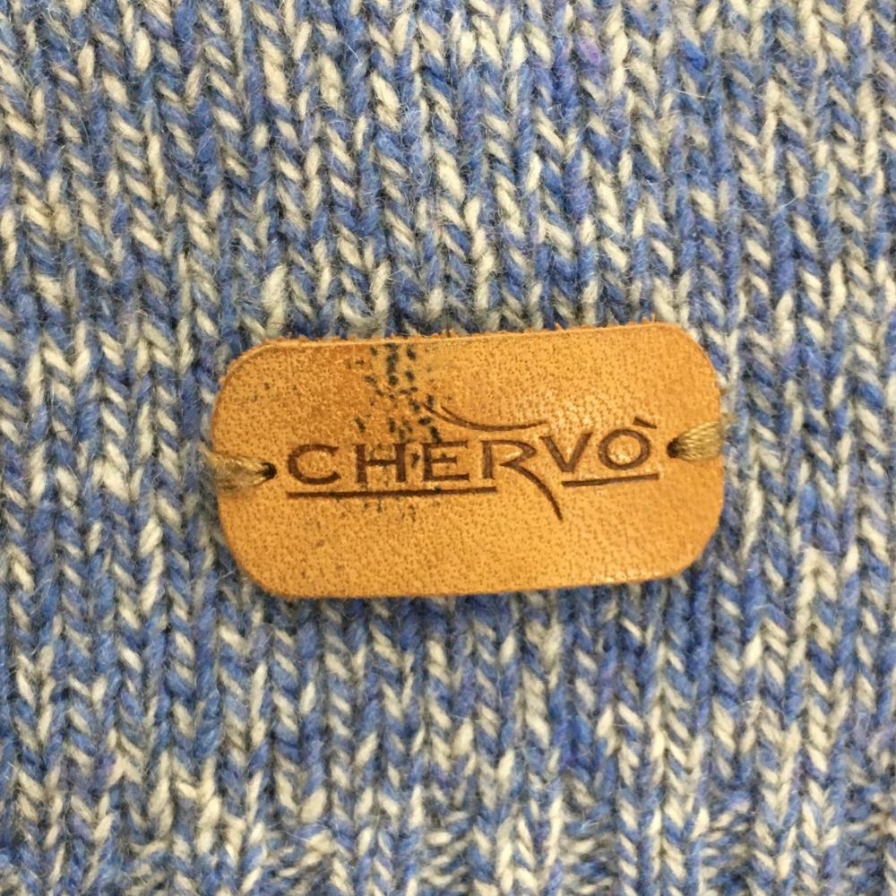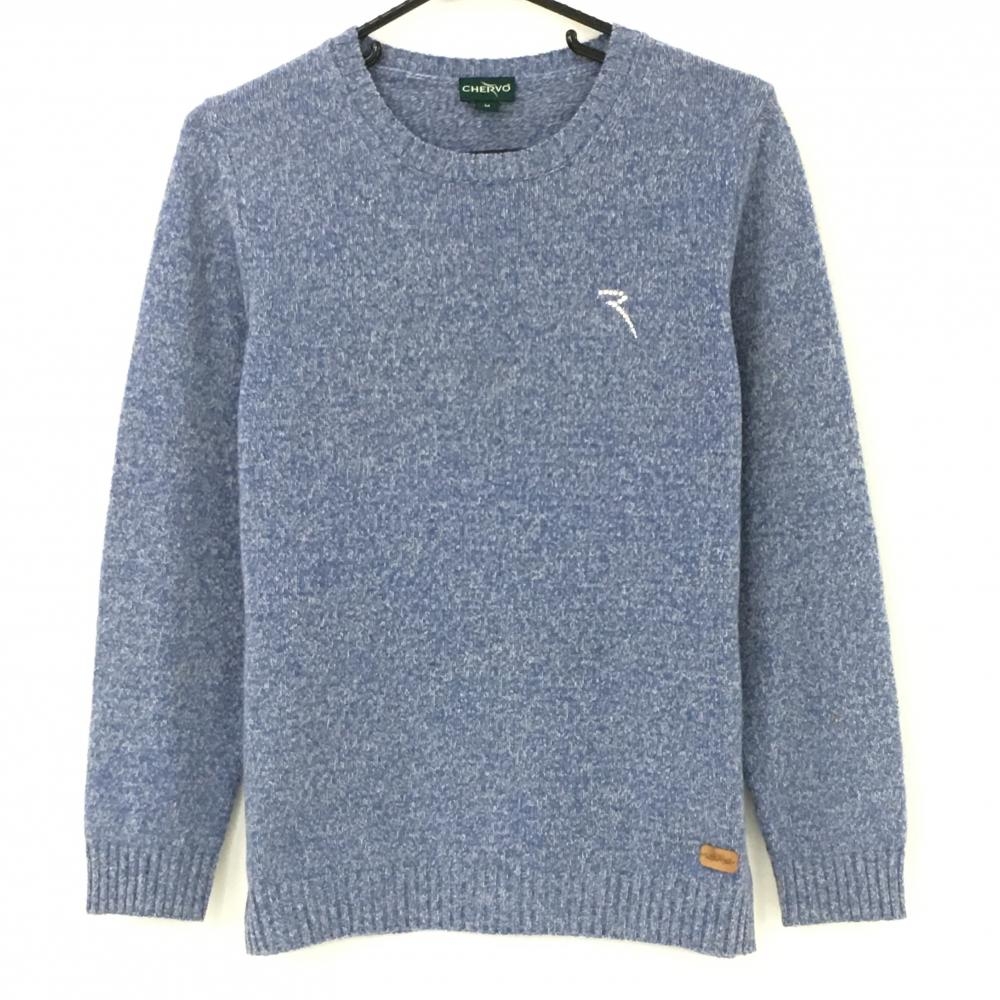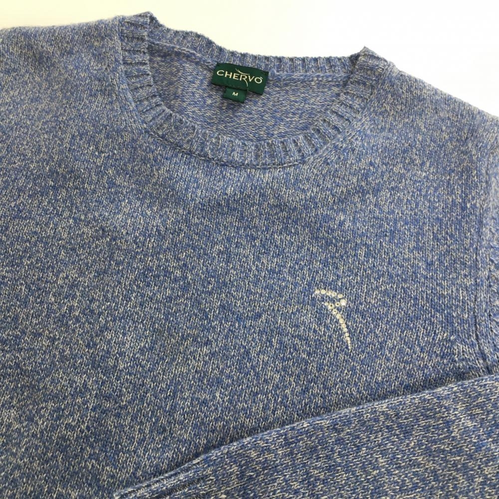 シェルボ セーター 杢ライトブルー系 ニット ラインストーンロゴ レディース M ゴルフウェア CHERVO