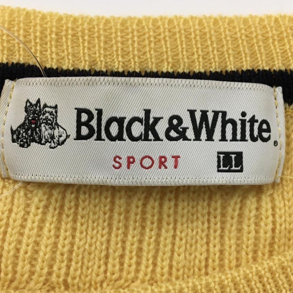ブラックアンドホワイト セーター ライトイエロー ケーブル編み ウール100% メンズ LL ゴルフウェア Black&White