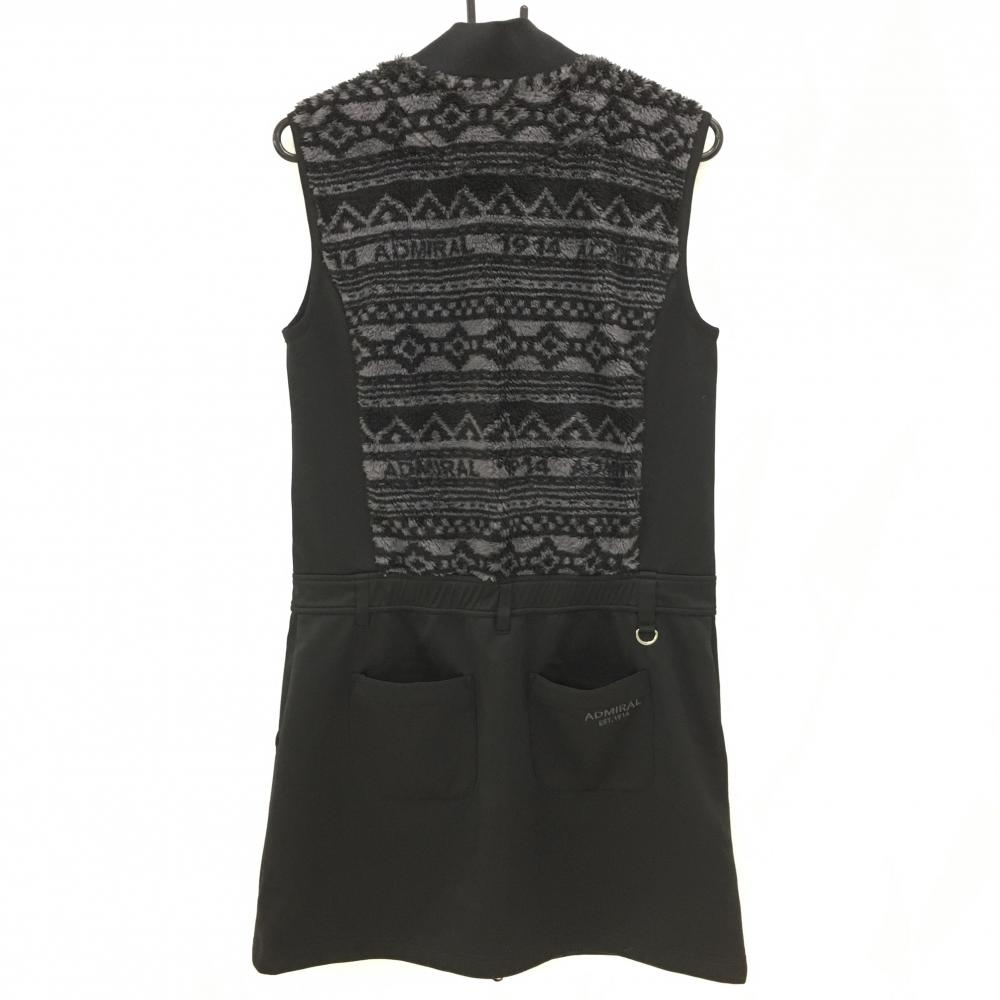 【美品】アドミラル ボア切替ノースリーブワンピース 黒×グレー 一部ボア 裏起毛 ダブルジップ レディース L ゴルフウェア Admiral