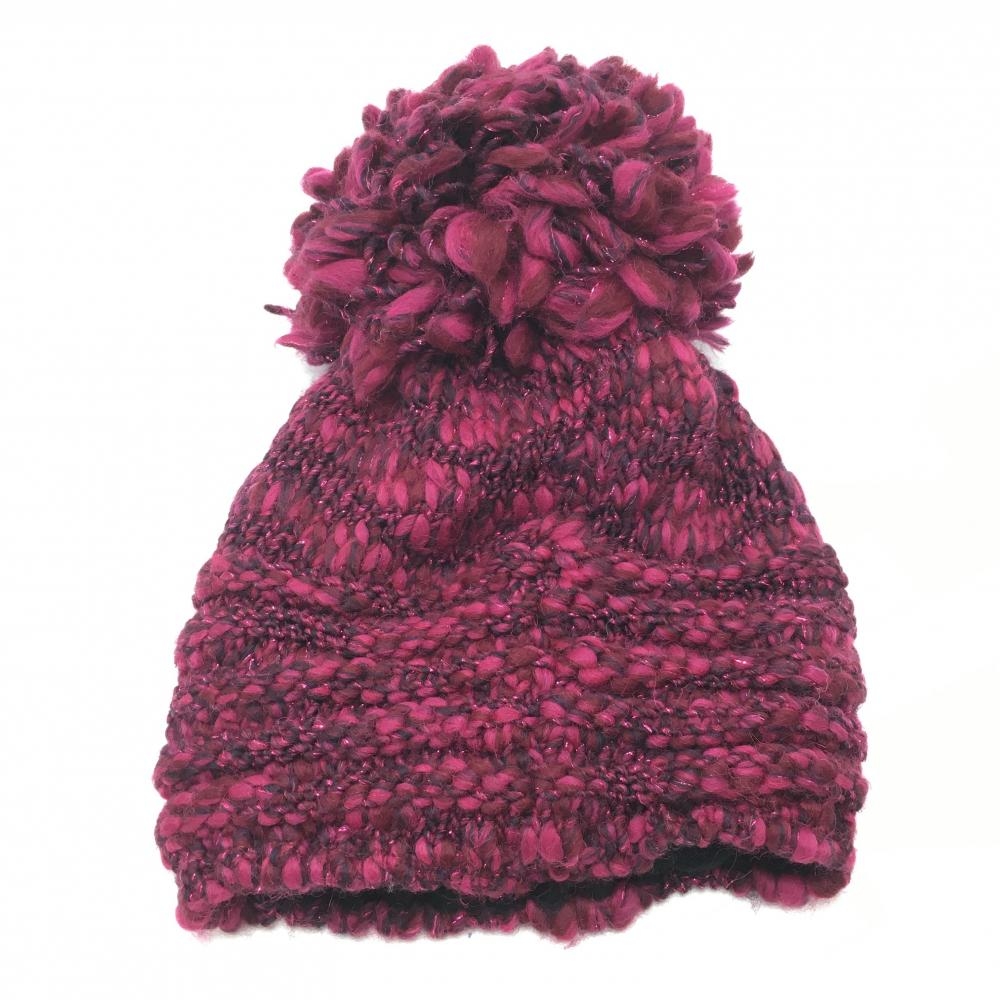 【美品】シェルボ ニット帽 ボルドー ポンポン付 ウール・アルパカ混 裏フリース ゴルフウェア CHERVO