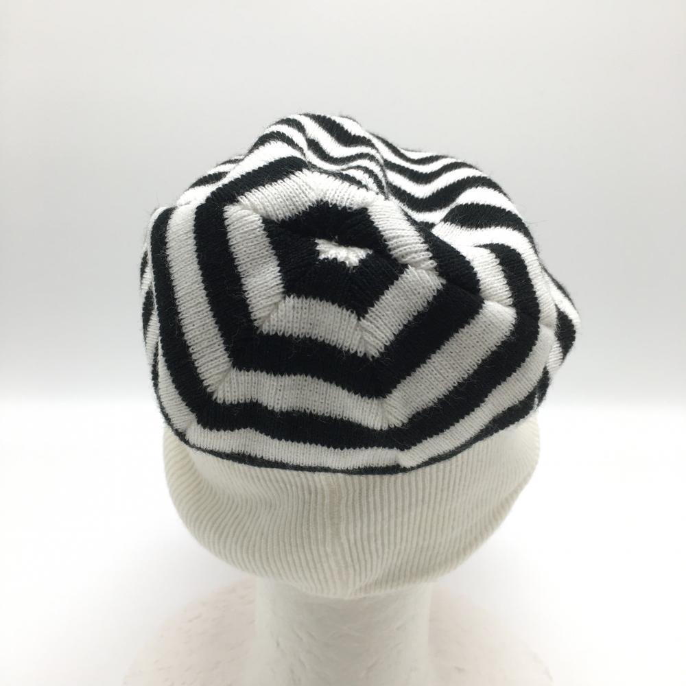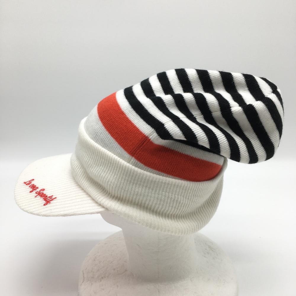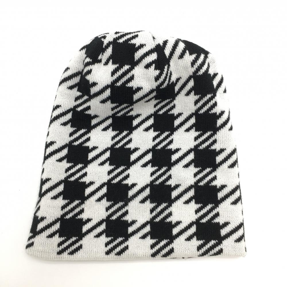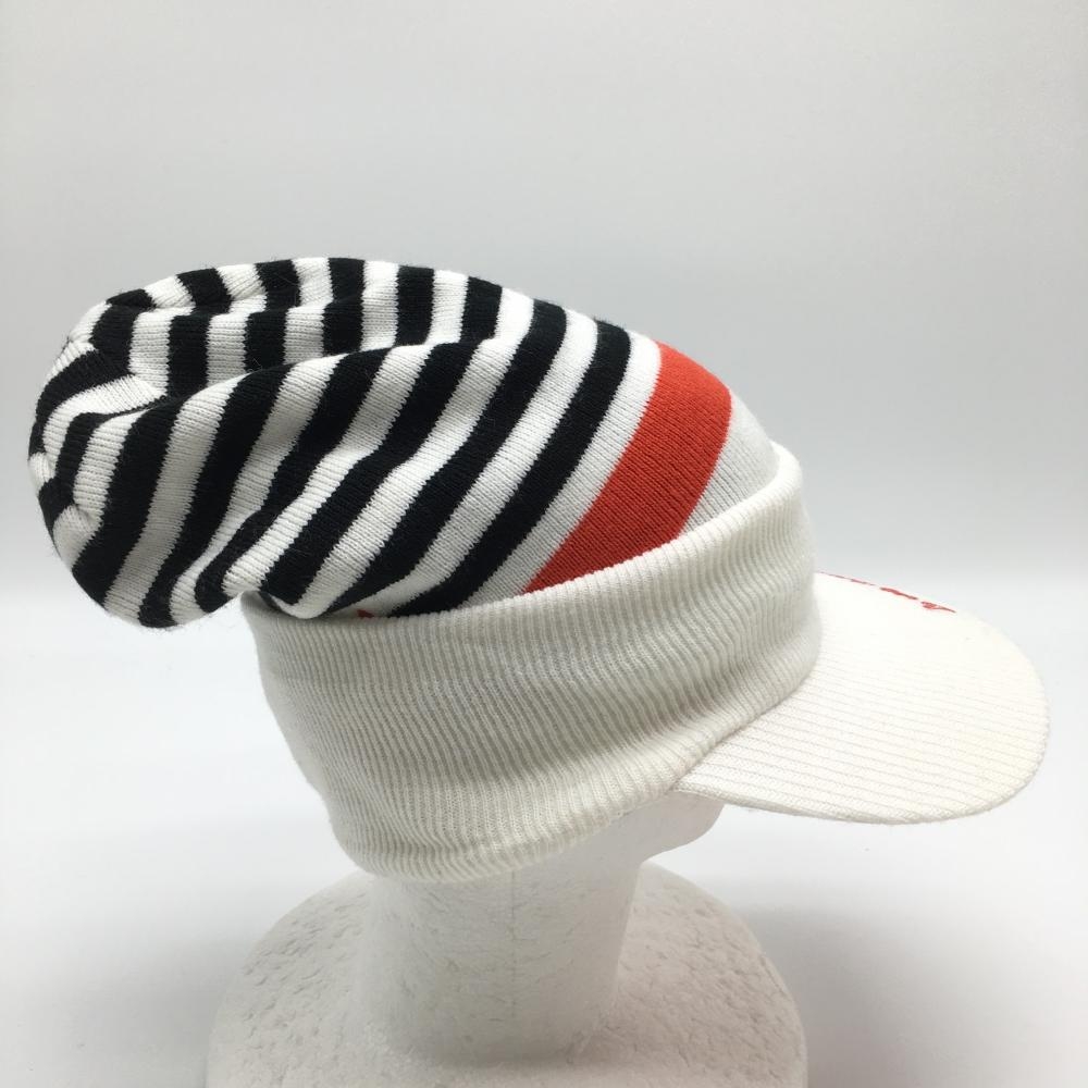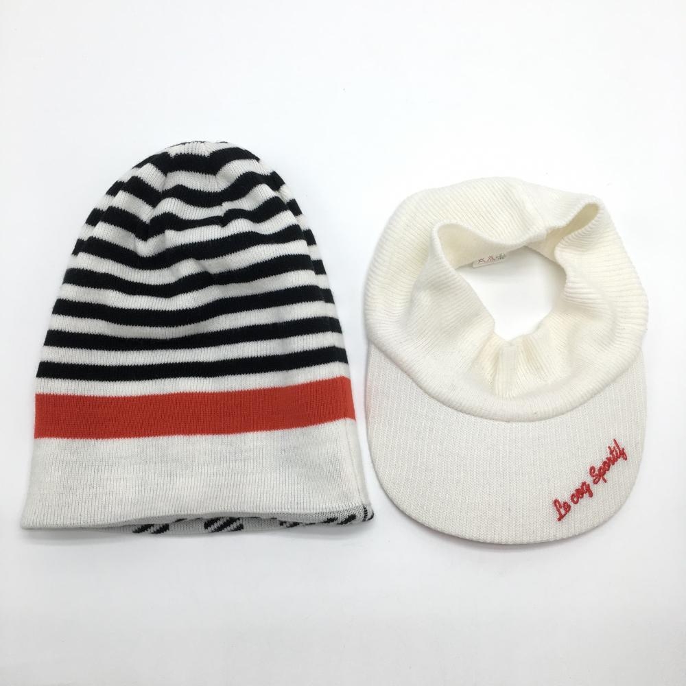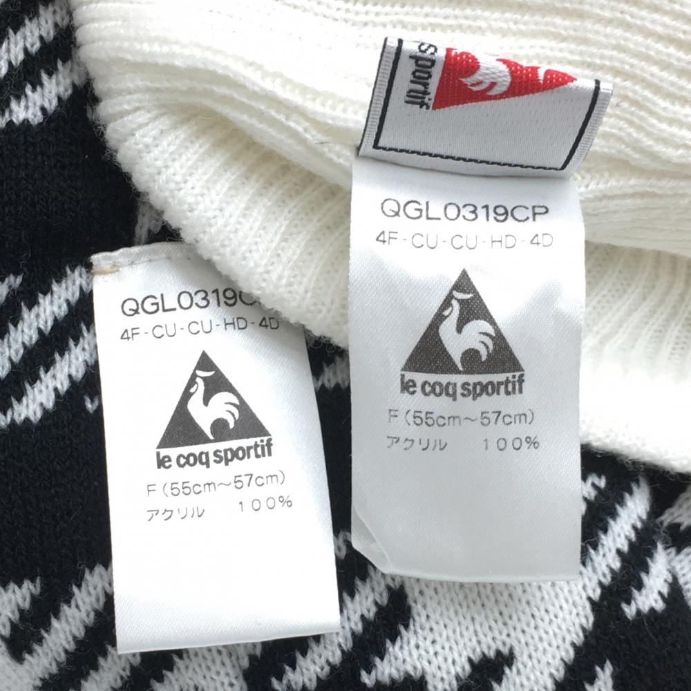 ルコック サンバイザー付リバーシブルニット帽 白×黒 ボーダー 裏千鳥格子 サンバイザー F(55-57cm) ゴルフウェア le coq sportif