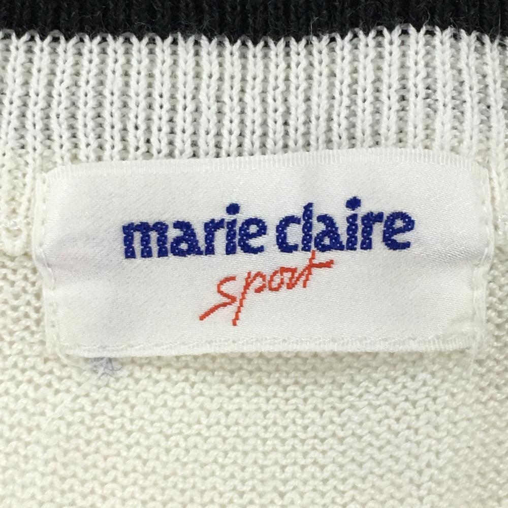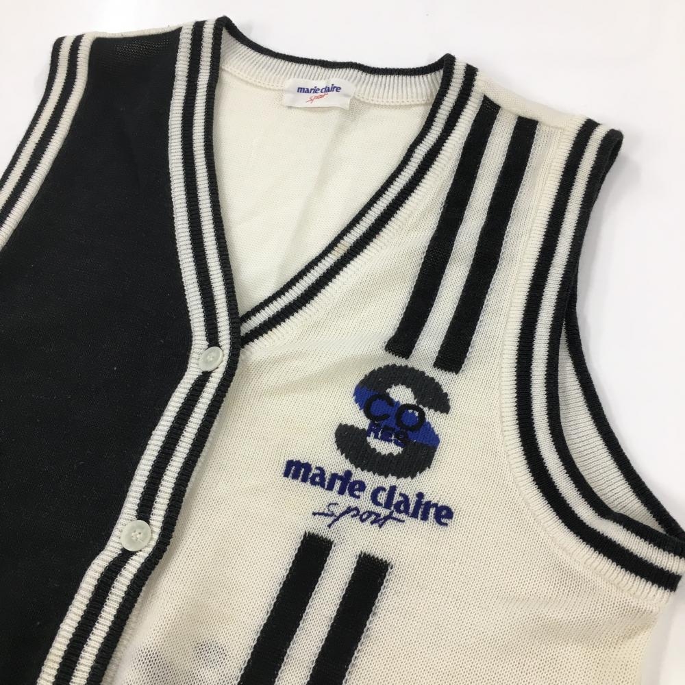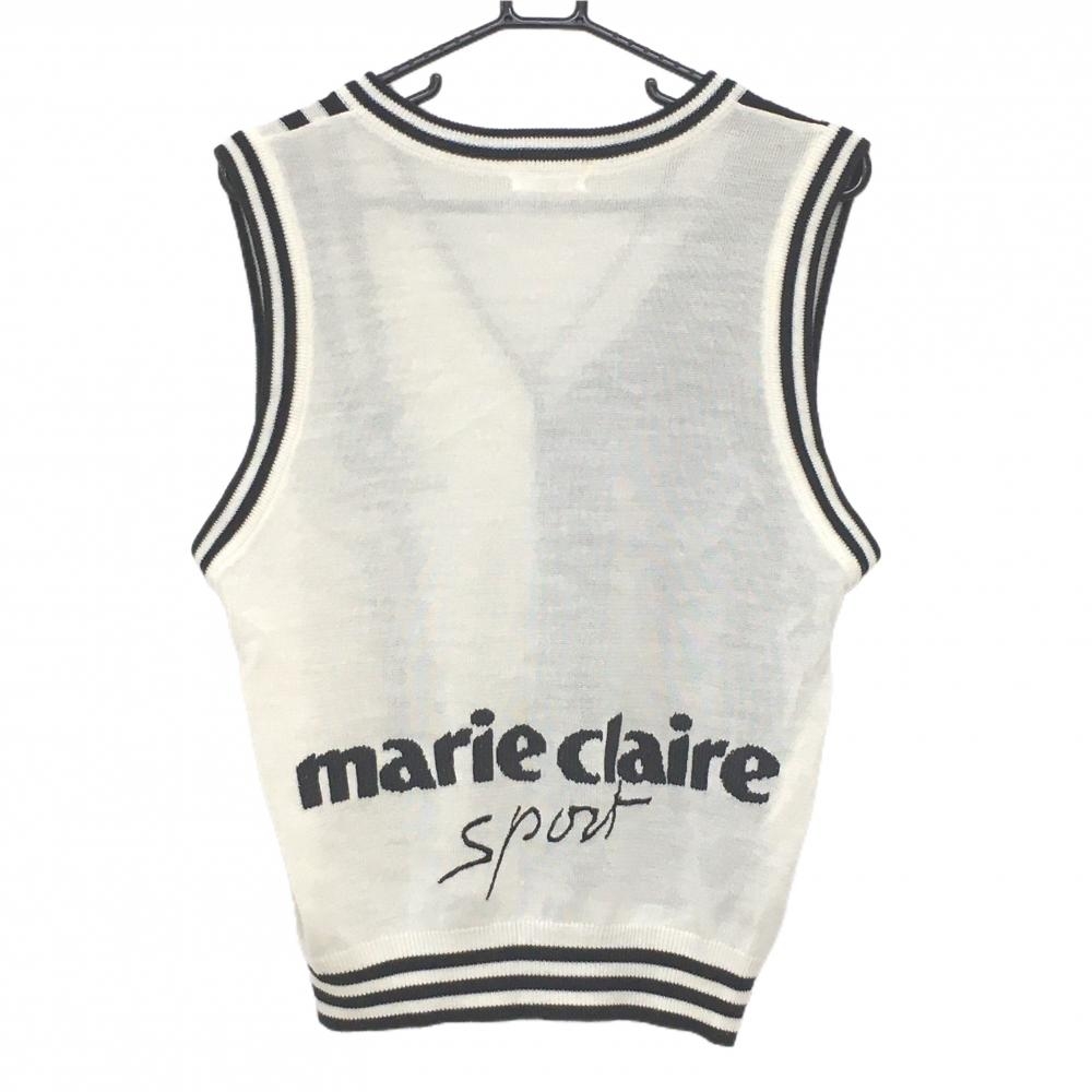 マリクレールスポール ニットベスト 白×黒 背面ロゴ レディース ゴルフウェア marie claire