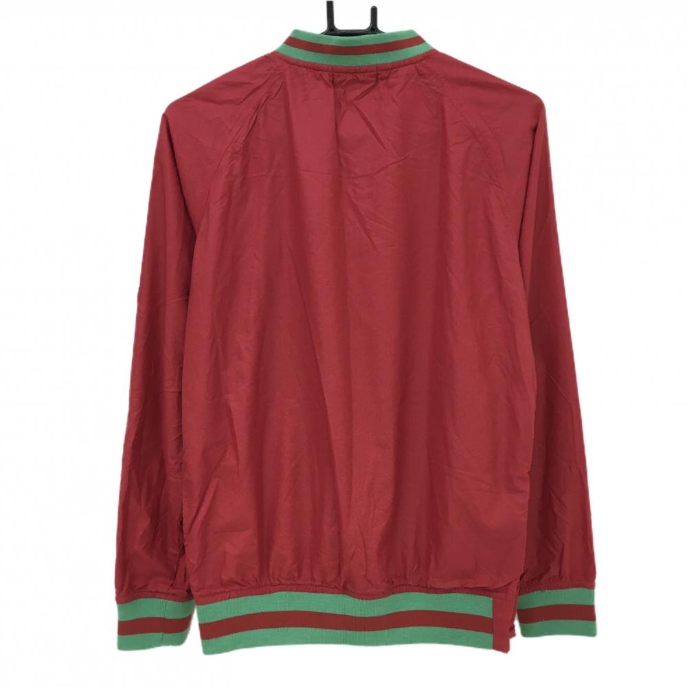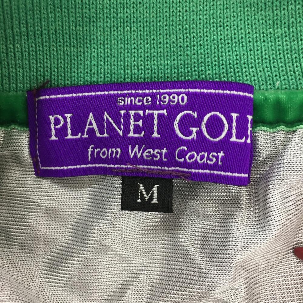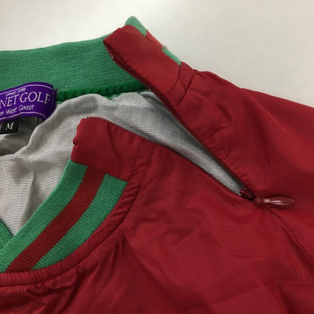 【超美品】プラネットゴルフ ナイロンスニード レッド×グリーン 蓄熱裏地 Vネック 肩ハーフジップ メンズ M ゴルフウェア PLANET GOLF