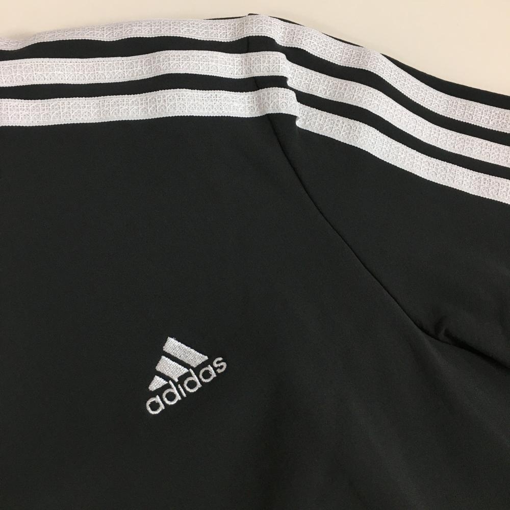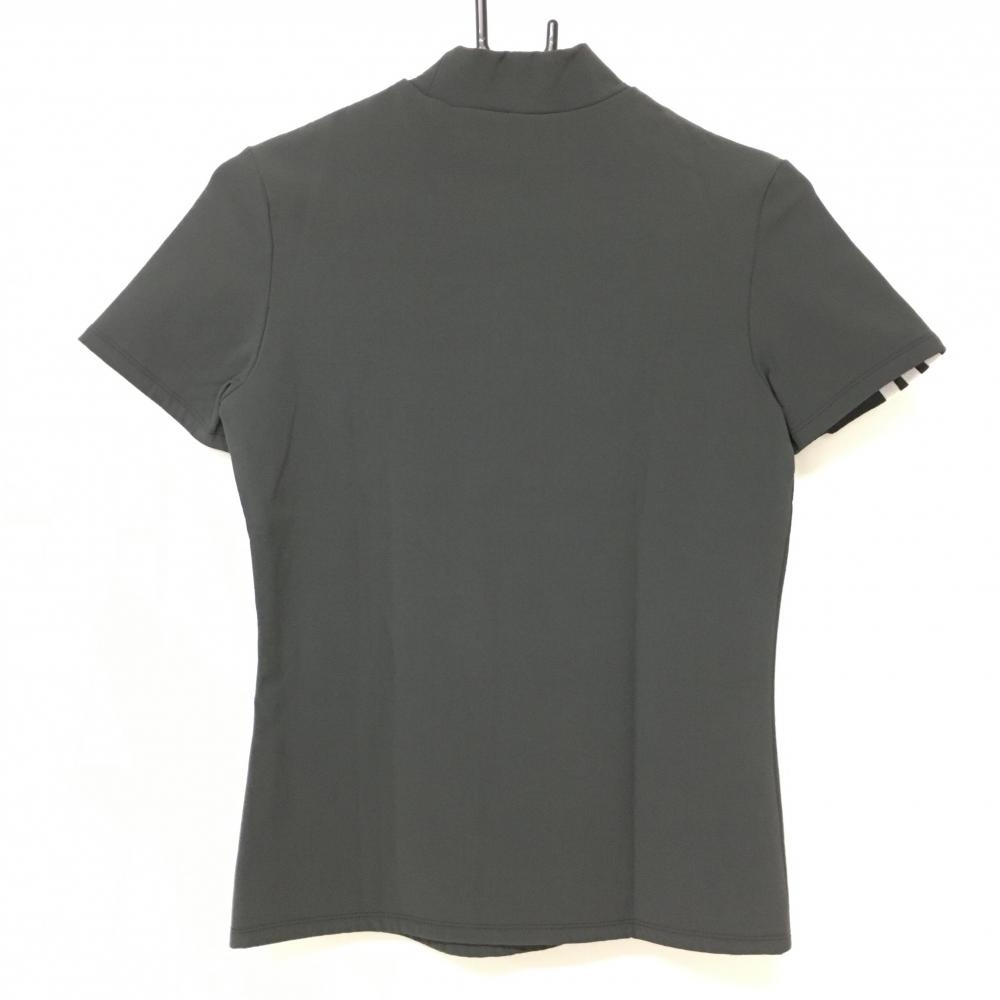 【超美品】アディダス 半袖ハイネックシャツ ダークグレー×白 袖3ライン レディース D ゴルフウェア adidas