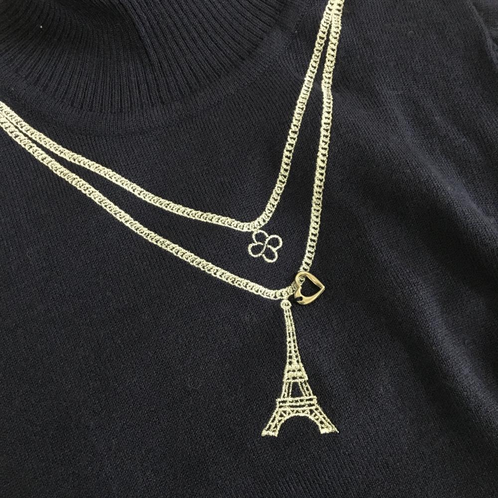 【美品】マリクレールスポール タートルネックセーター ネイビー×シルバー ニット レディース M ゴルフウェア marie claire