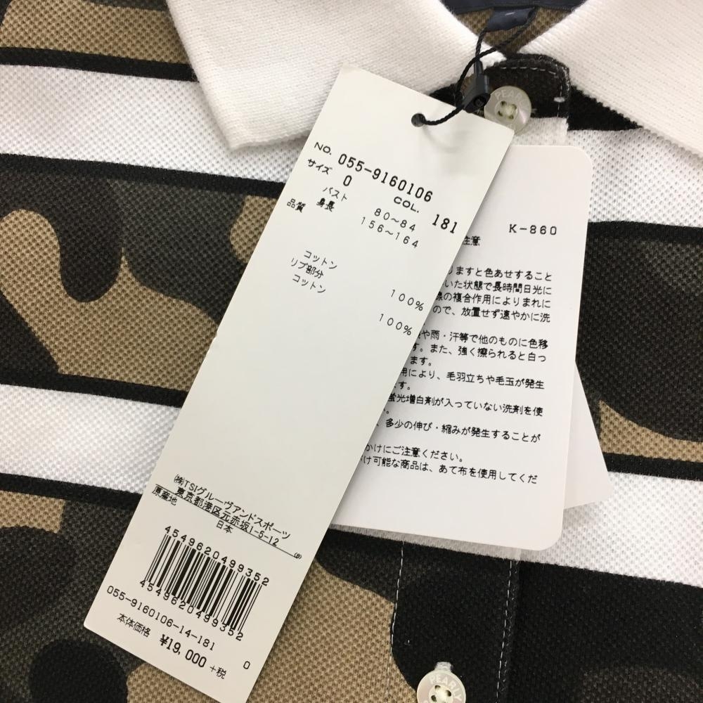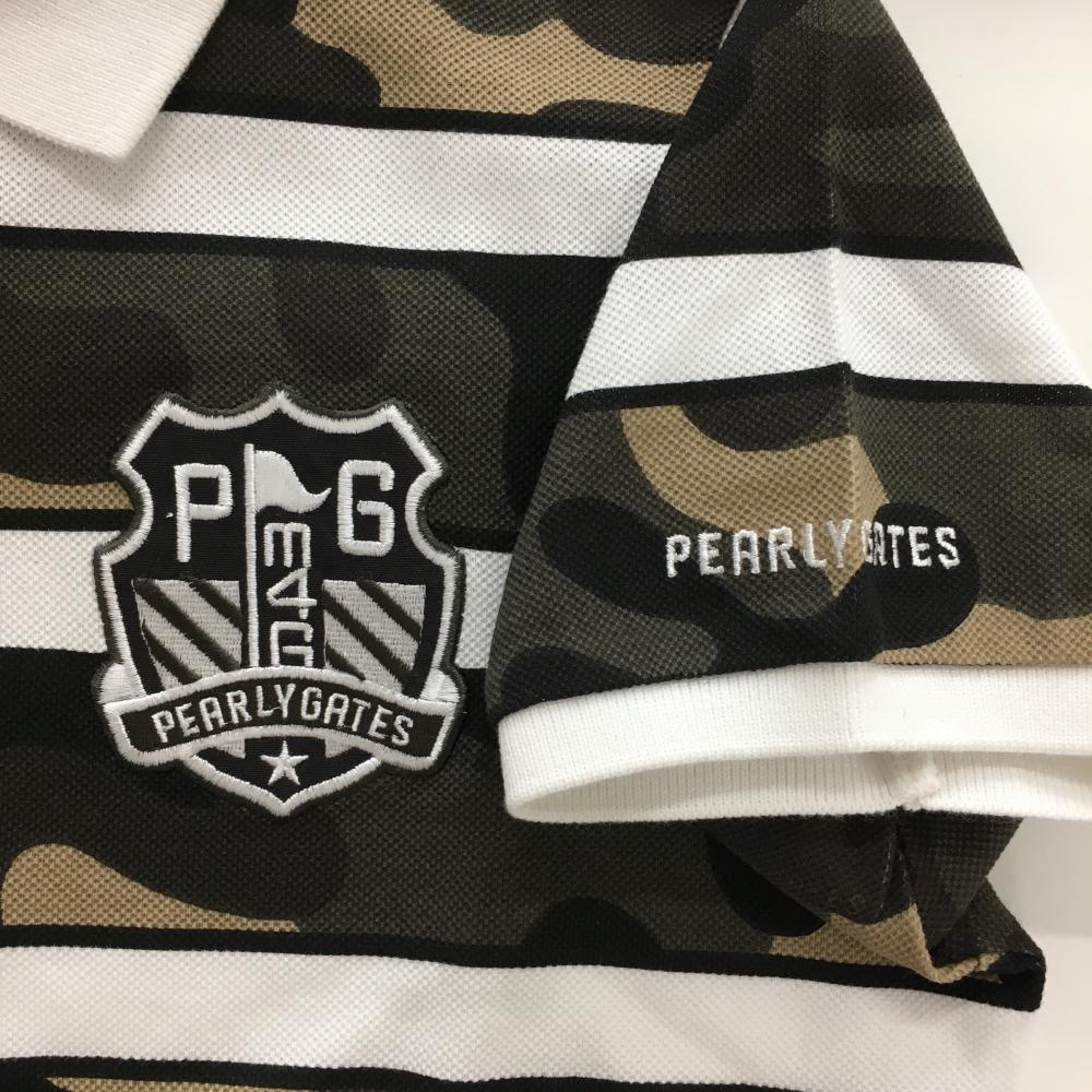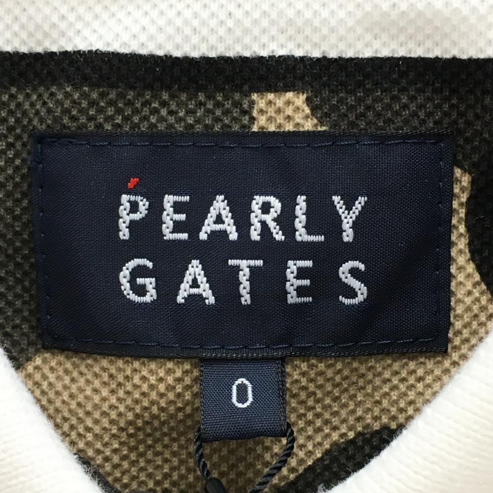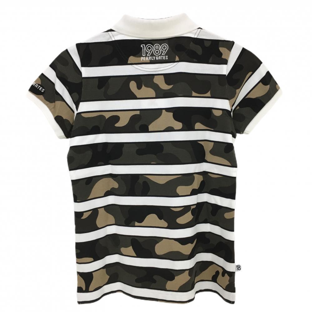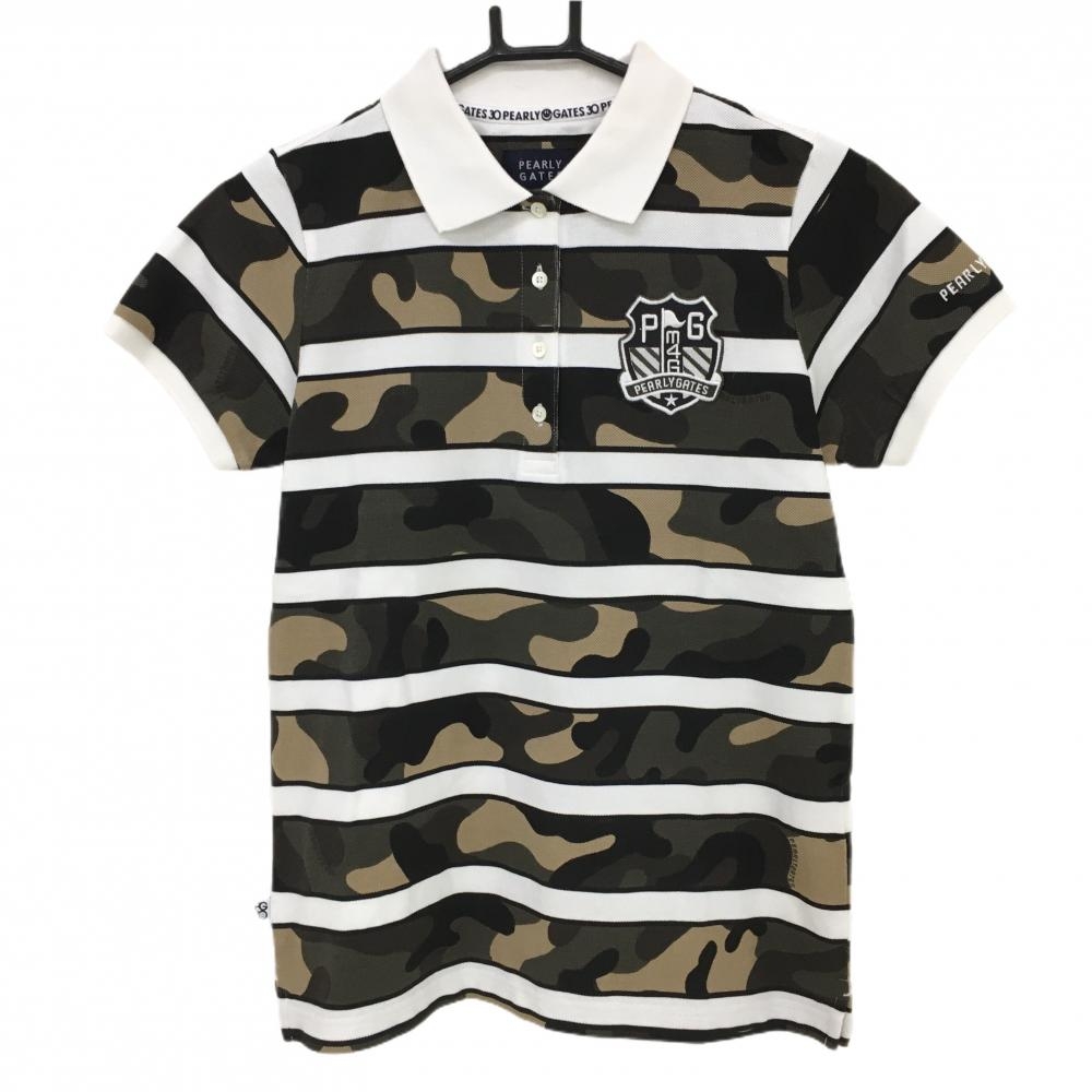 【新品】パーリーゲイツ 半袖ポロシャツ カーキ×白 カモフラ ボーダー 迷彩 日本製 レディース 0(S) ゴルフウェア PEARLY GATES