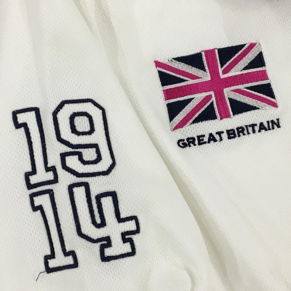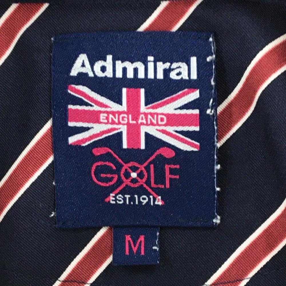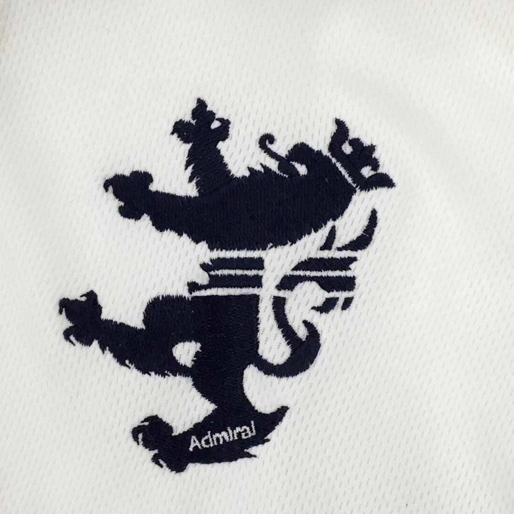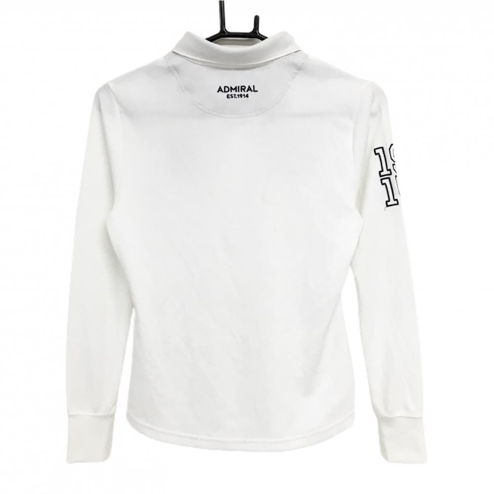 アドミラル 長袖ポロシャツ 白×ネイビー 襟裏斜めストライプ ビッグロゴ刺しゅう レディース M ゴルフウェア Admiral