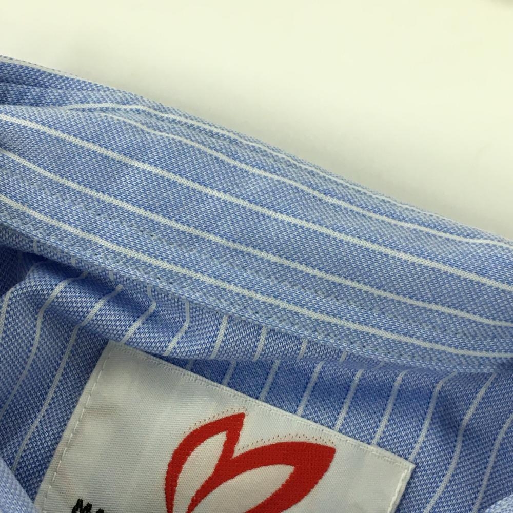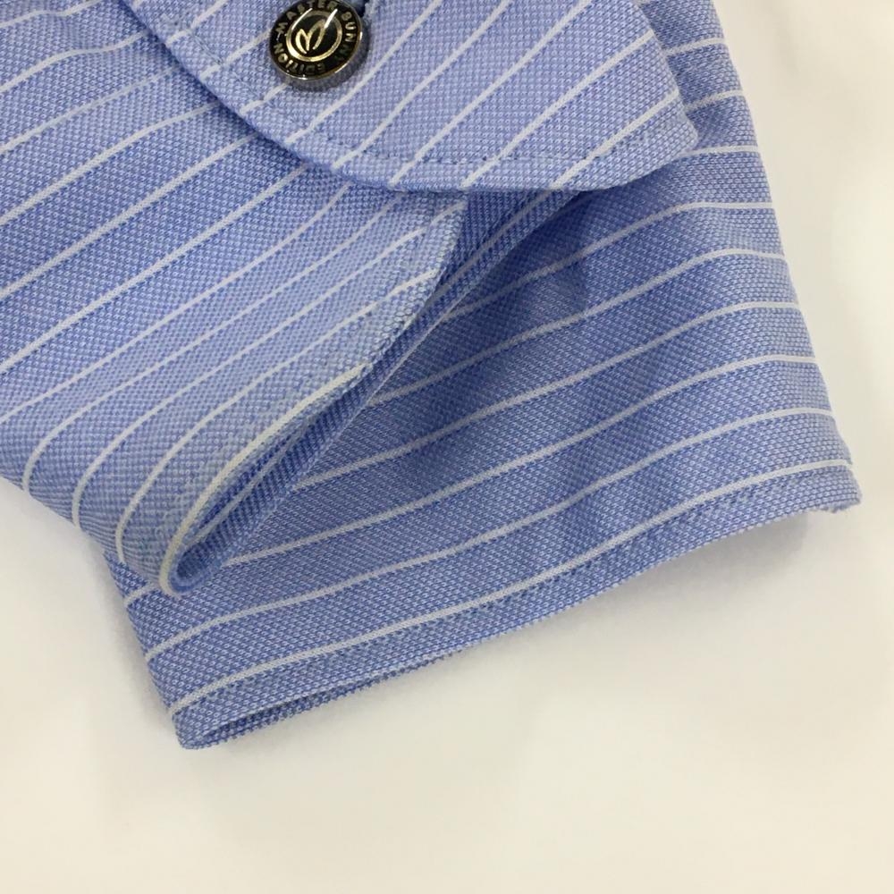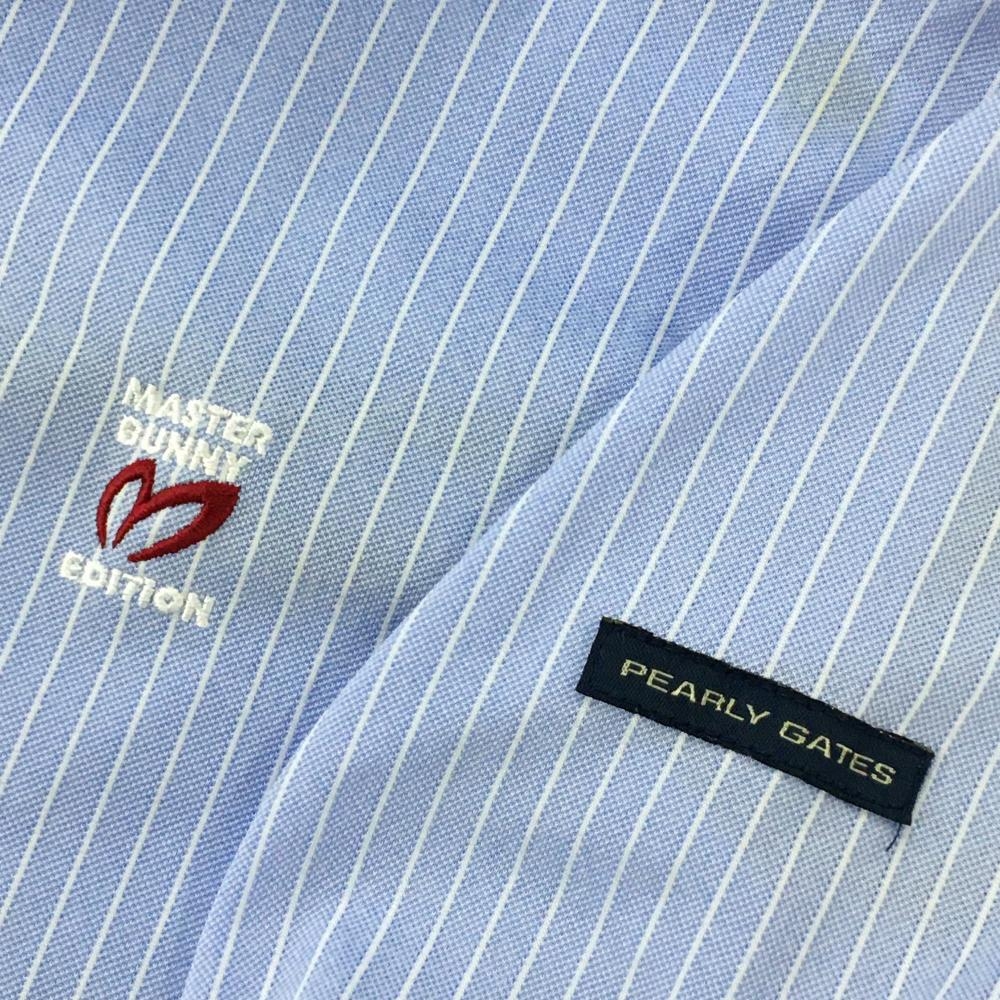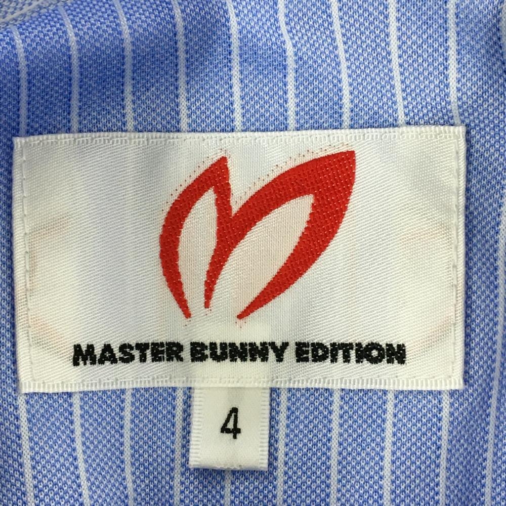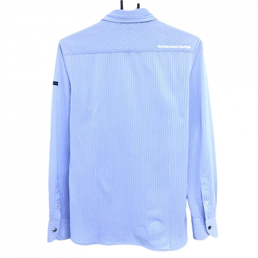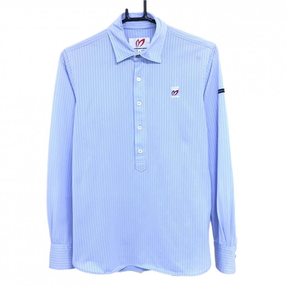 マスターバニー 長袖ポロシャツ ライトブルー×白 ストライプ メンズ 4(M) ゴルフウェア MASTER BUNNY EDITION