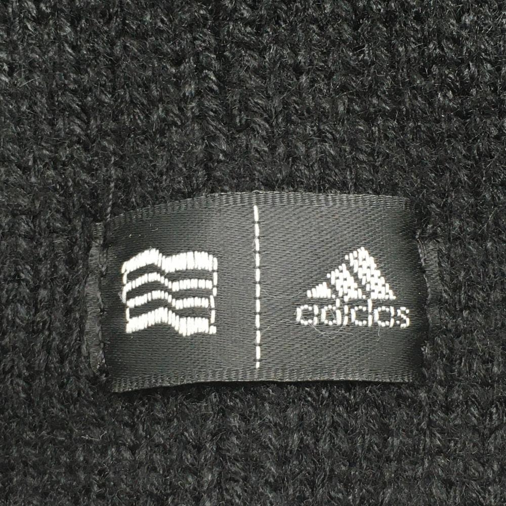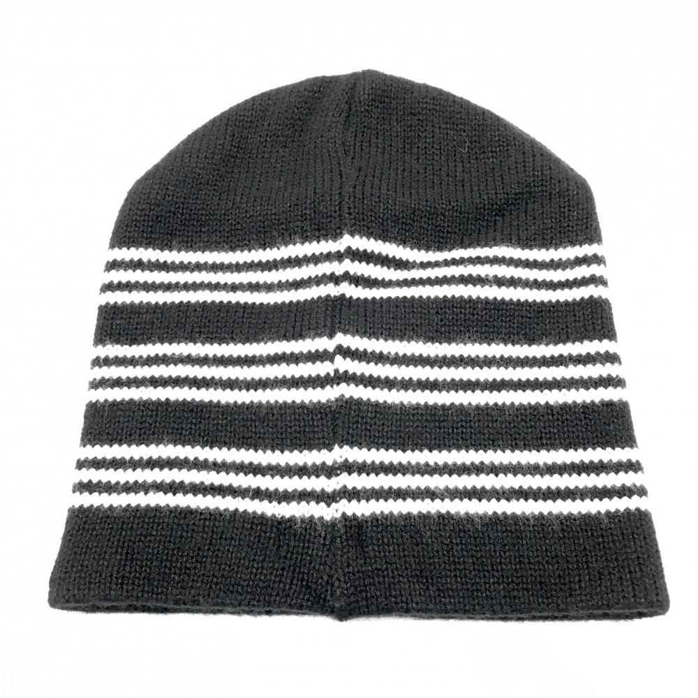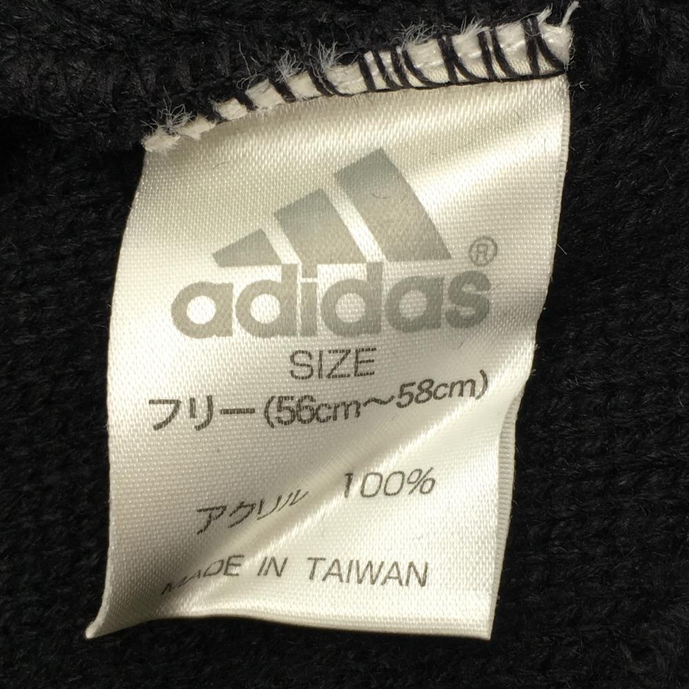 【美品】アディダス ニット帽 黒×白 ボーダー アクリル100% フリー(56cm-58cm) ゴルフウェア adidas