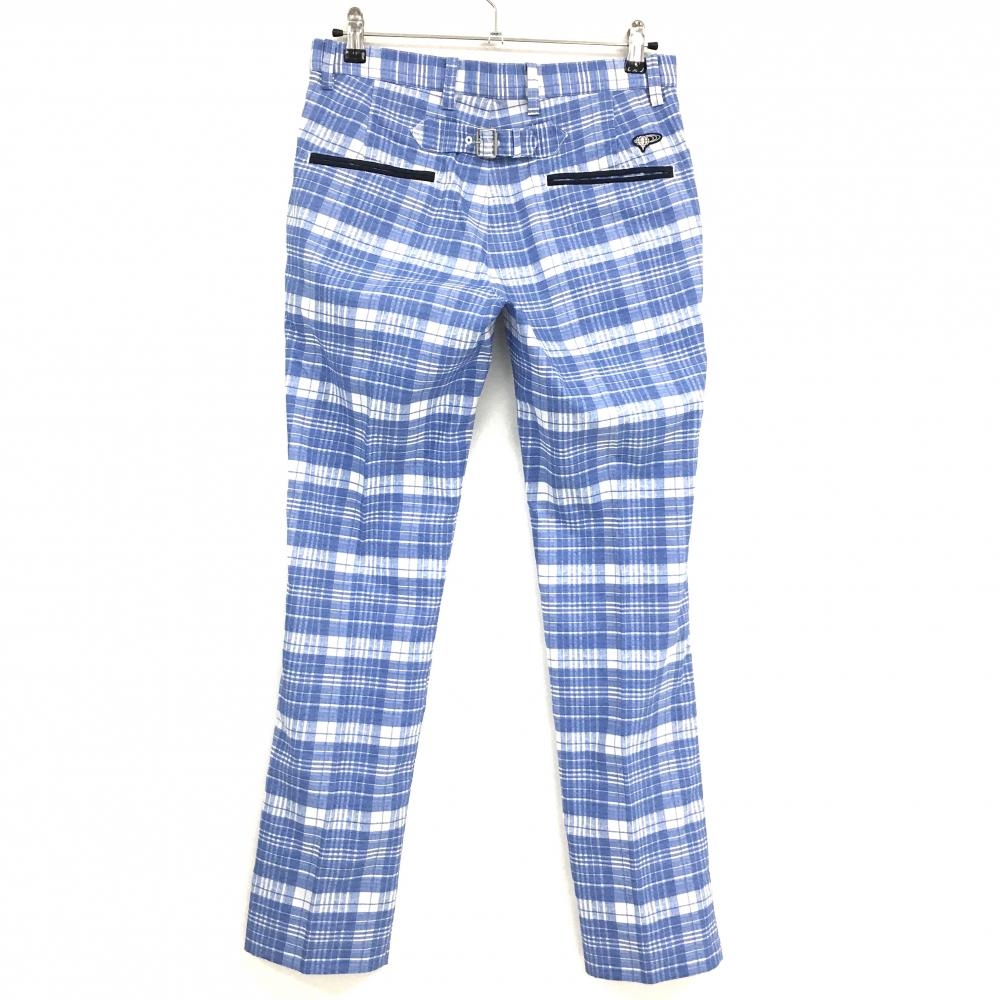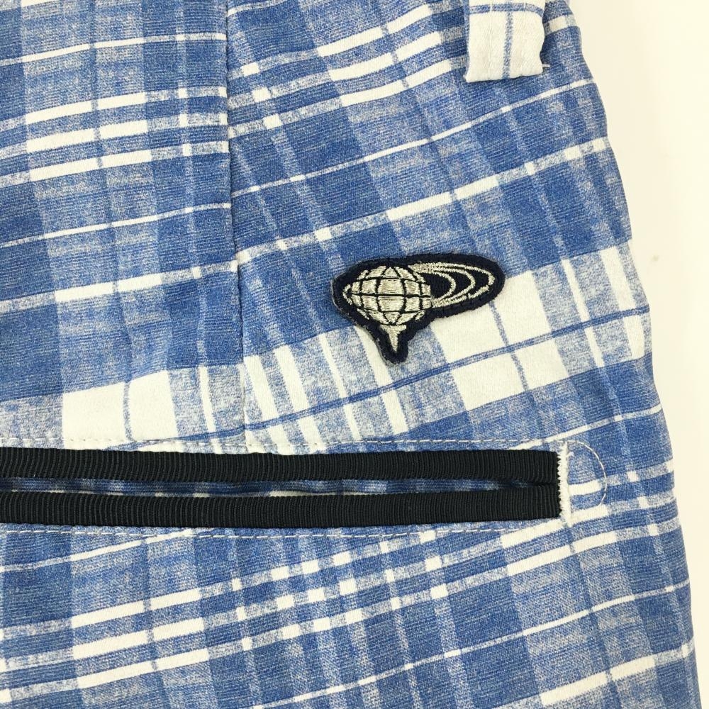 【超美品】ビームスゴルフ パンツ ライトブルー×白 チェック ストレッチ メンズ 44(S) ゴルフウェア BEAMS GOLF