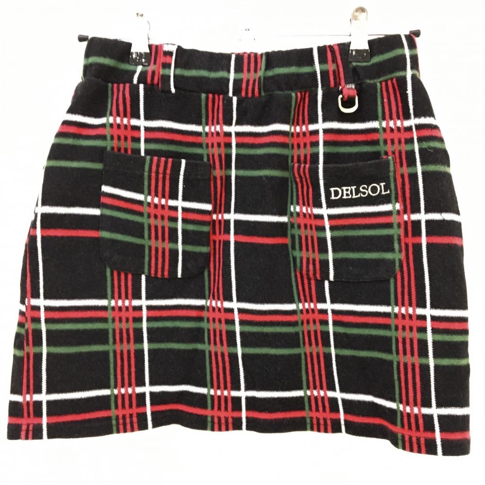 デルソル スカート 黒×レッド チェック 内側インナーパンツ レディース L ゴルフウェア DELSOL