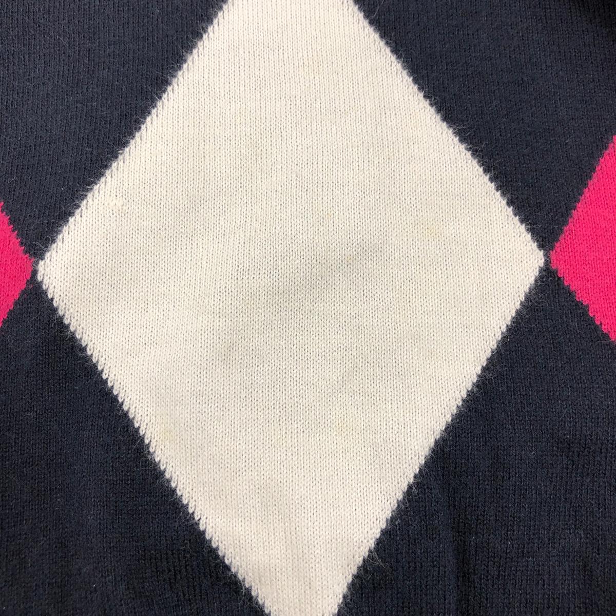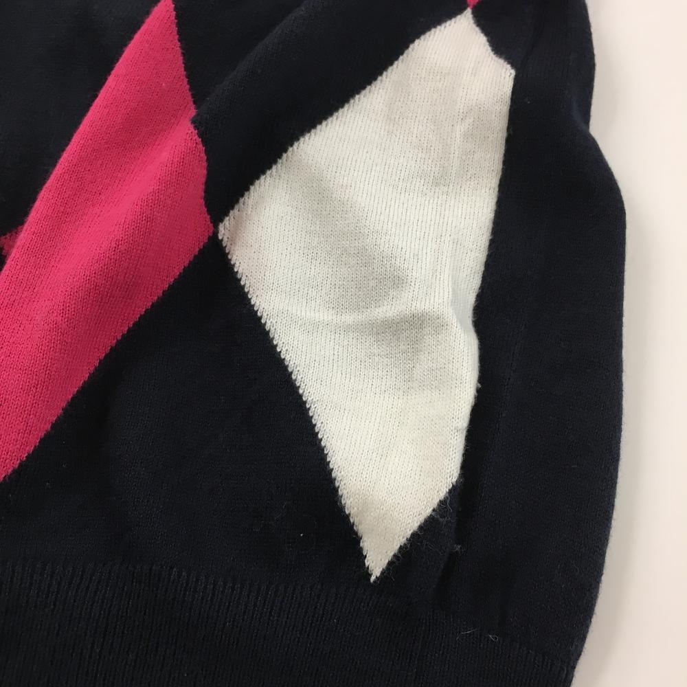 アドミラル ニットベスト ネイビー×ピンク 前面ダイヤ柄 胸ワッペン レディース L ゴルフウェア Admiral