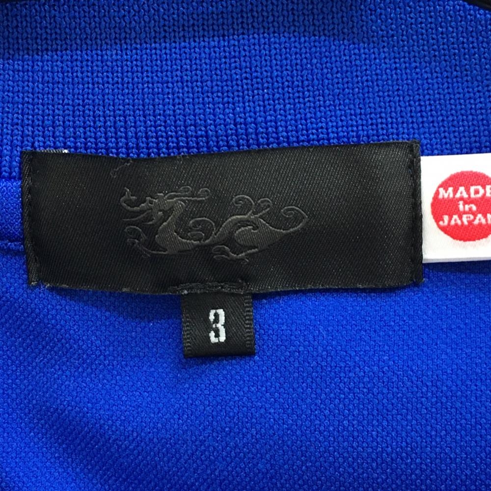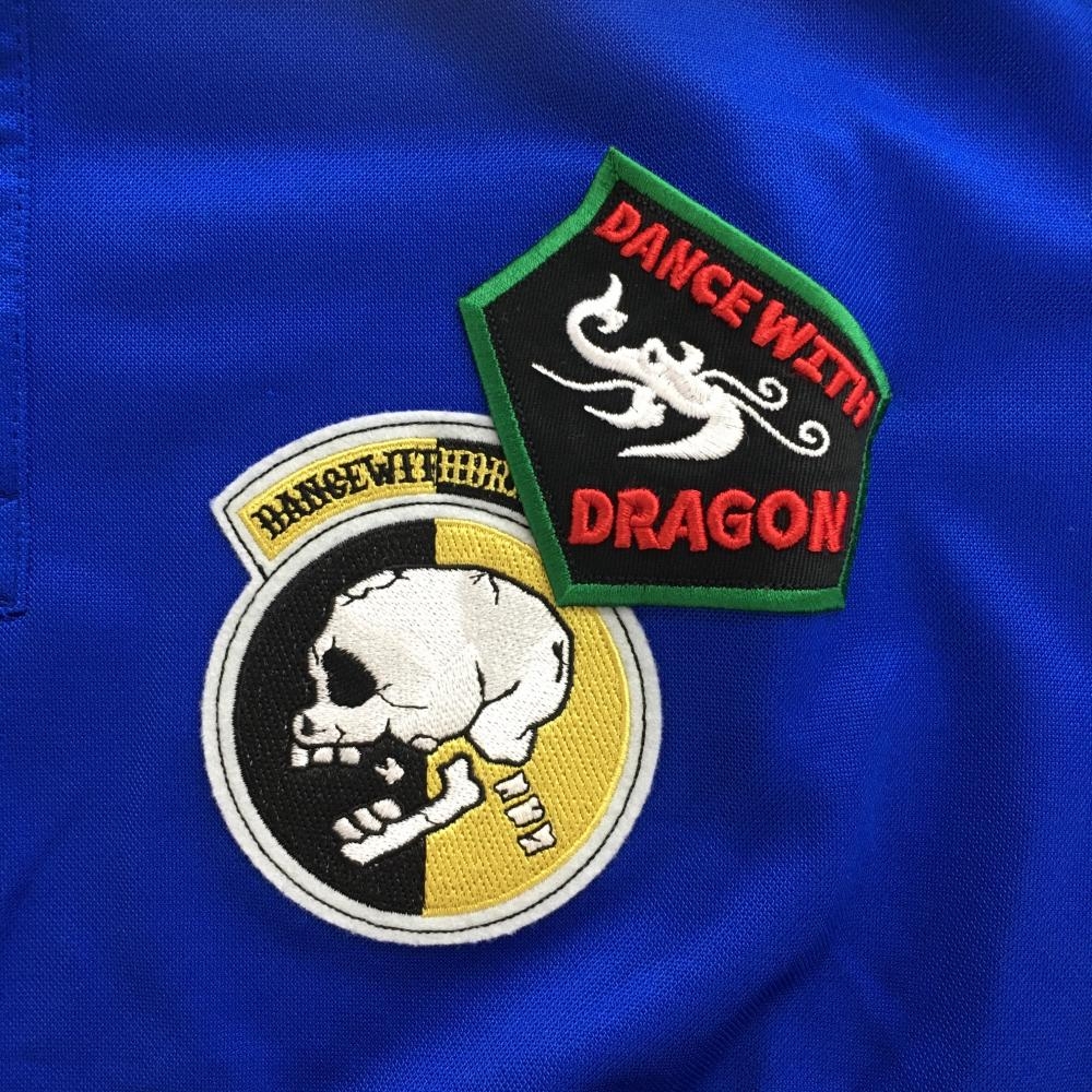 ダンスウィズドラゴン 半袖ポロシャツ ブルー×白 襟ライン 刺しゅうワッペン メンズ 3(L) ゴルフウェア Dance With Dragon