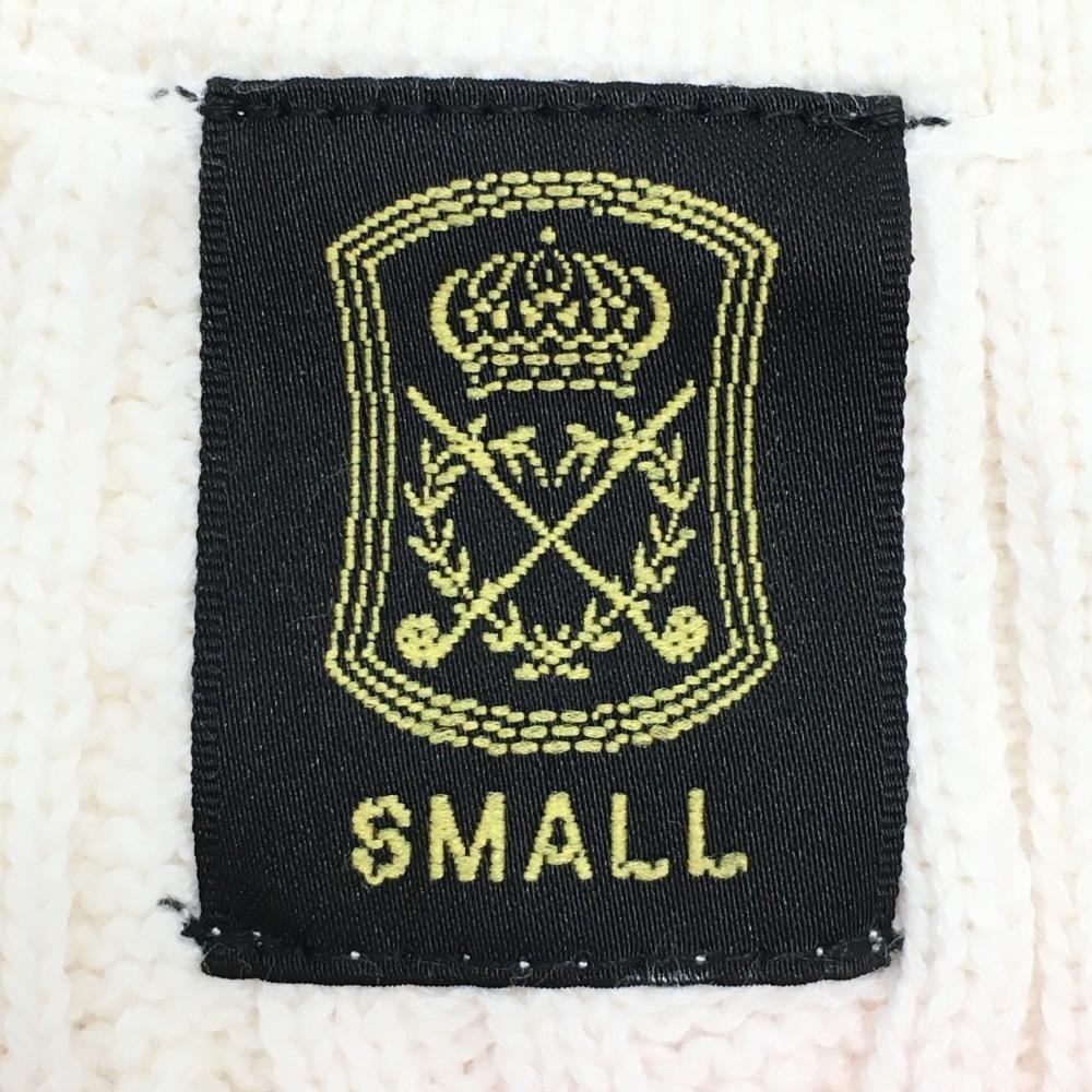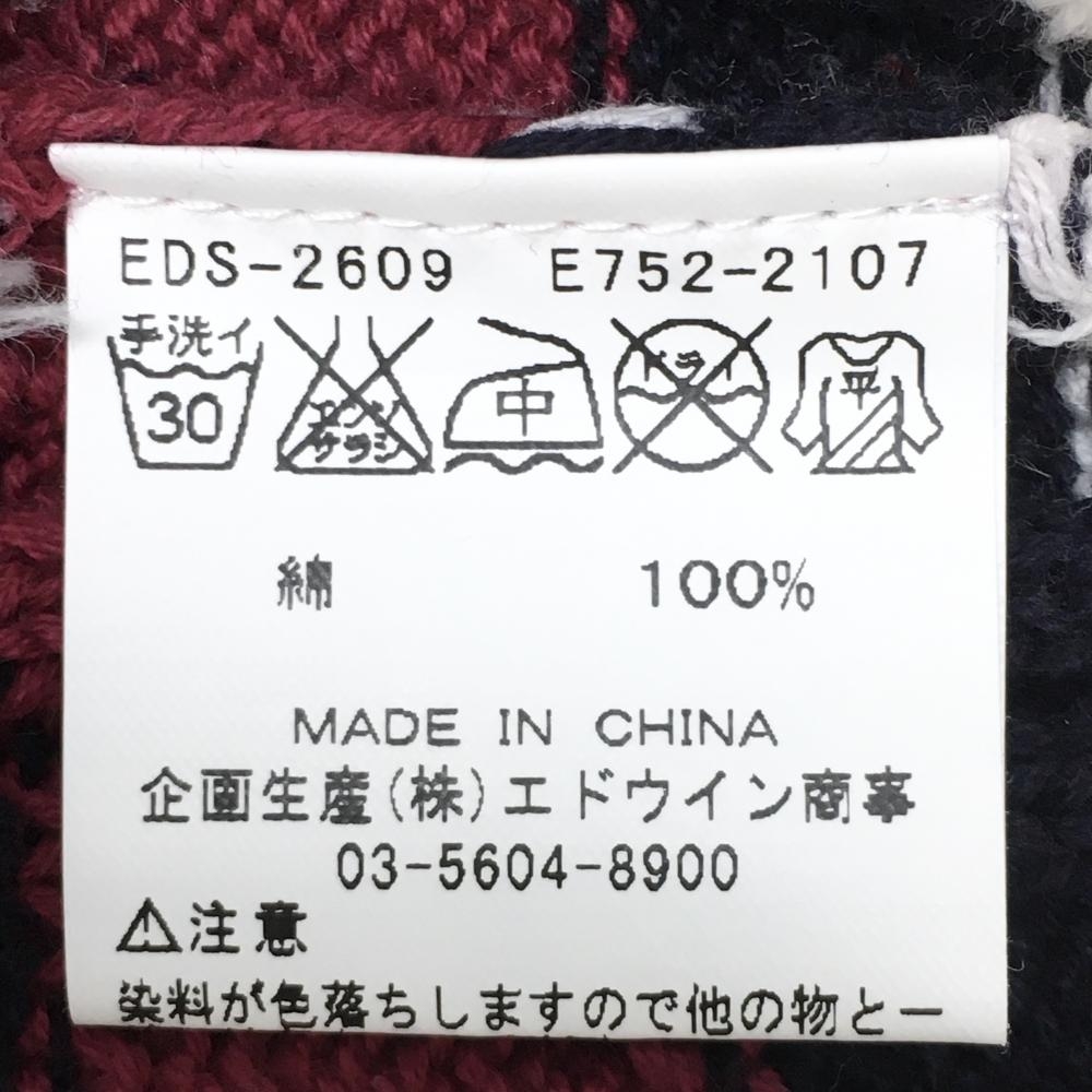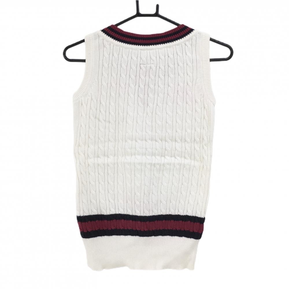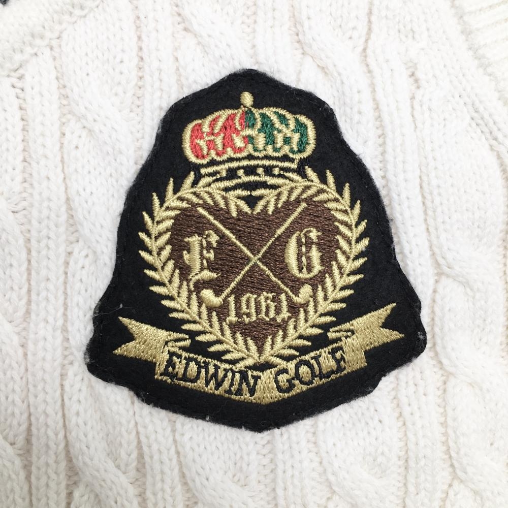 【超美品】エドウィンゴルフ ニットベスト 白×レッドピンク系 ケーブル編み 綿100% Vネック レディース SMALL ゴルフウェア EDWIN GOLF