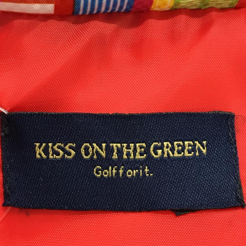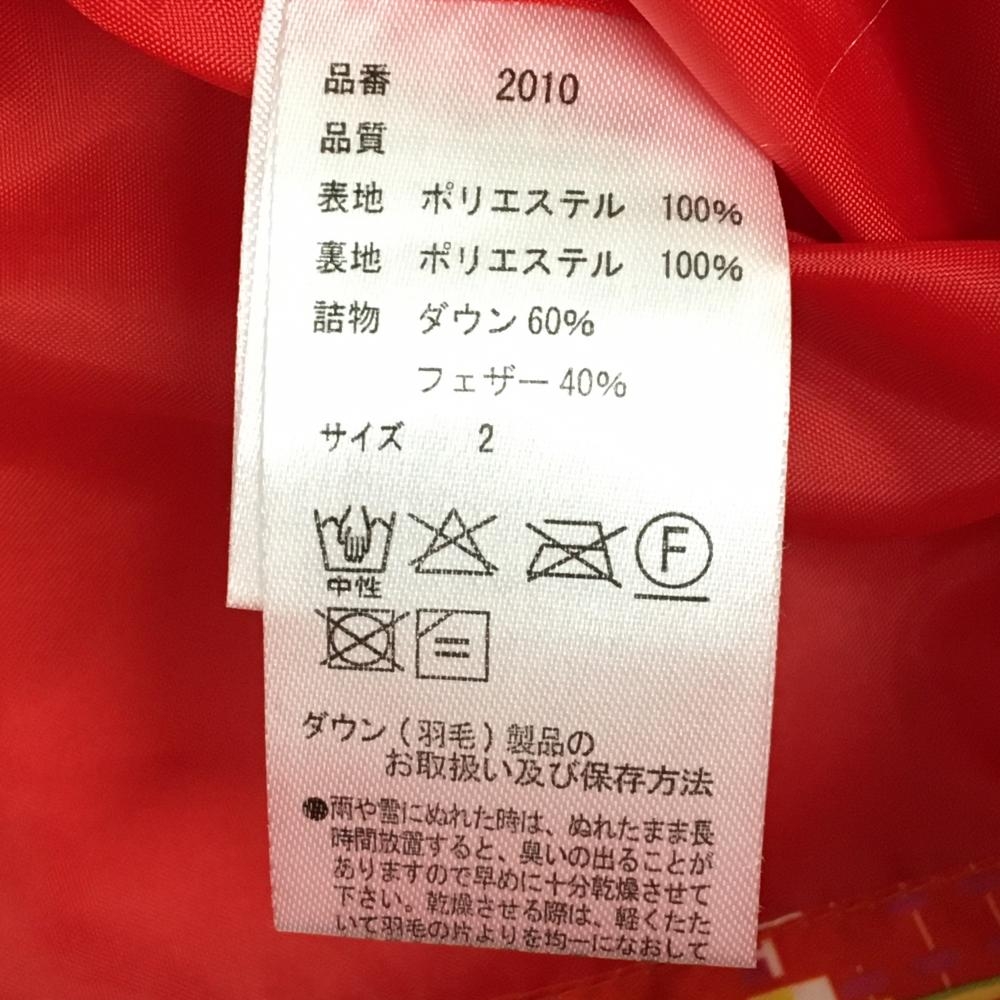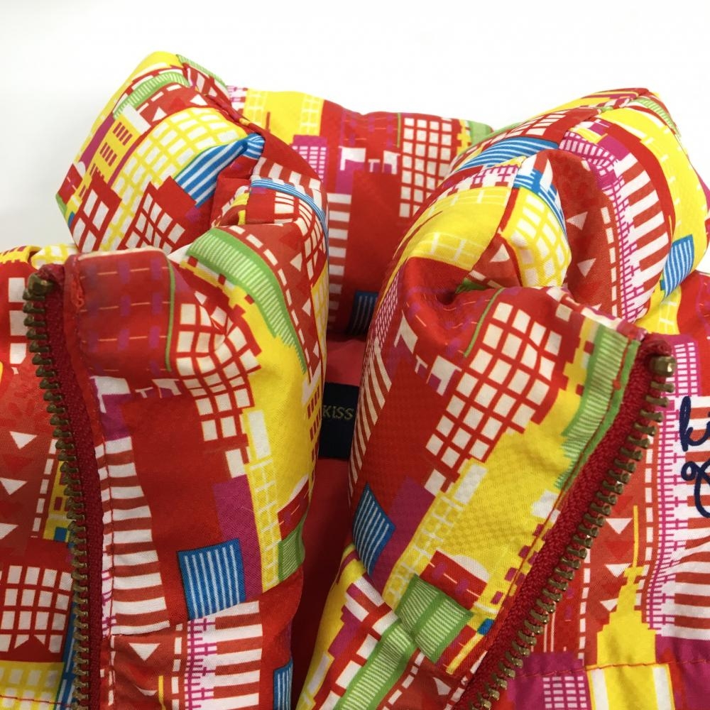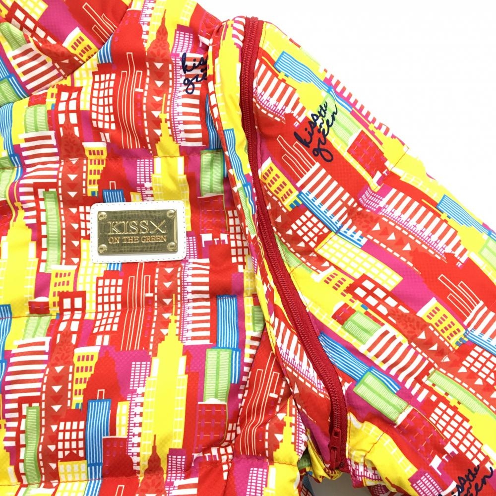 【美品】キスオンザグリーン 2WAYダウンコート レッド×イエロー 総柄 ジャケット レディース 2(M) ゴルフウェア kiss on the green