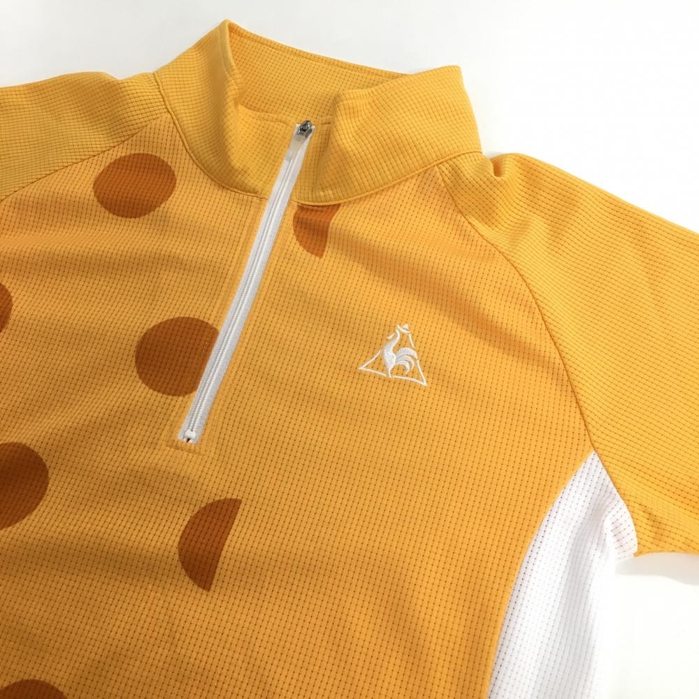ルコック 半袖ハイネックシャツ オレンジ×白 前面ドット メッシュ生地 ハーフジップ レディース M ゴルフウェア le coq sportif