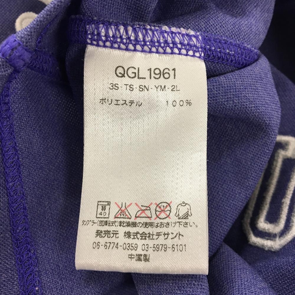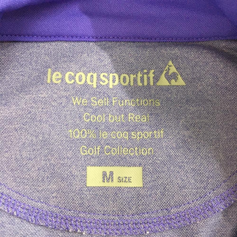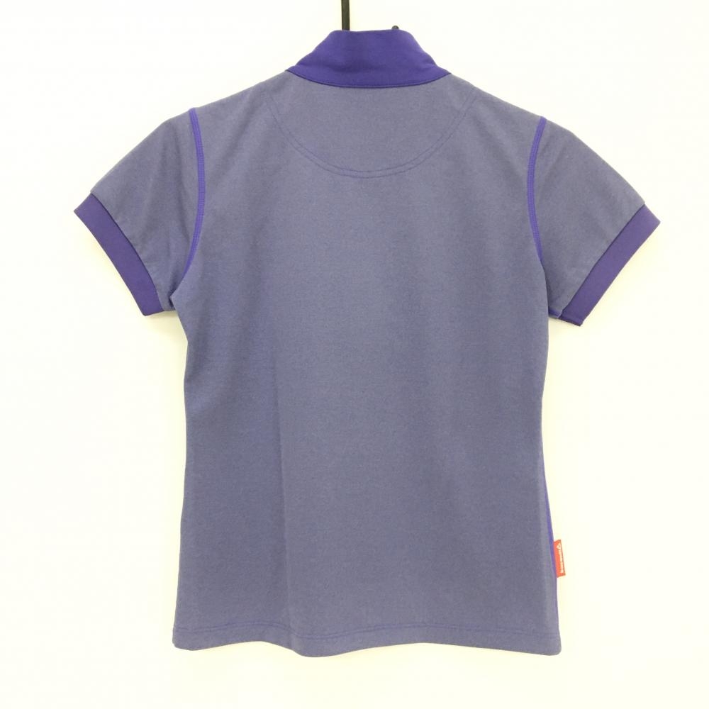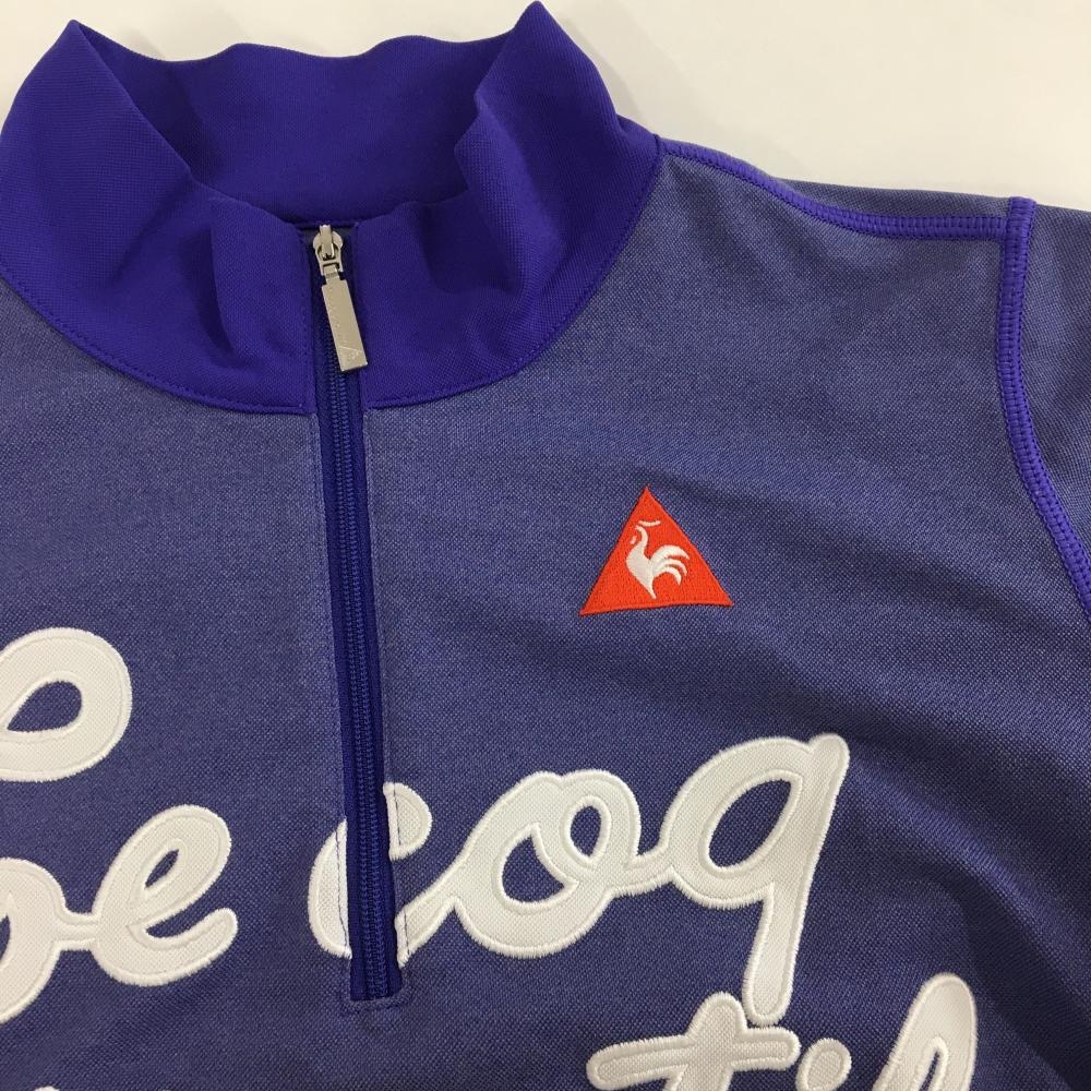 【超美品】ルコック 半袖ハイネックシャツ パープル×白 前面ロゴ ハーフジップ レディース M ゴルフウェア le coq sportif