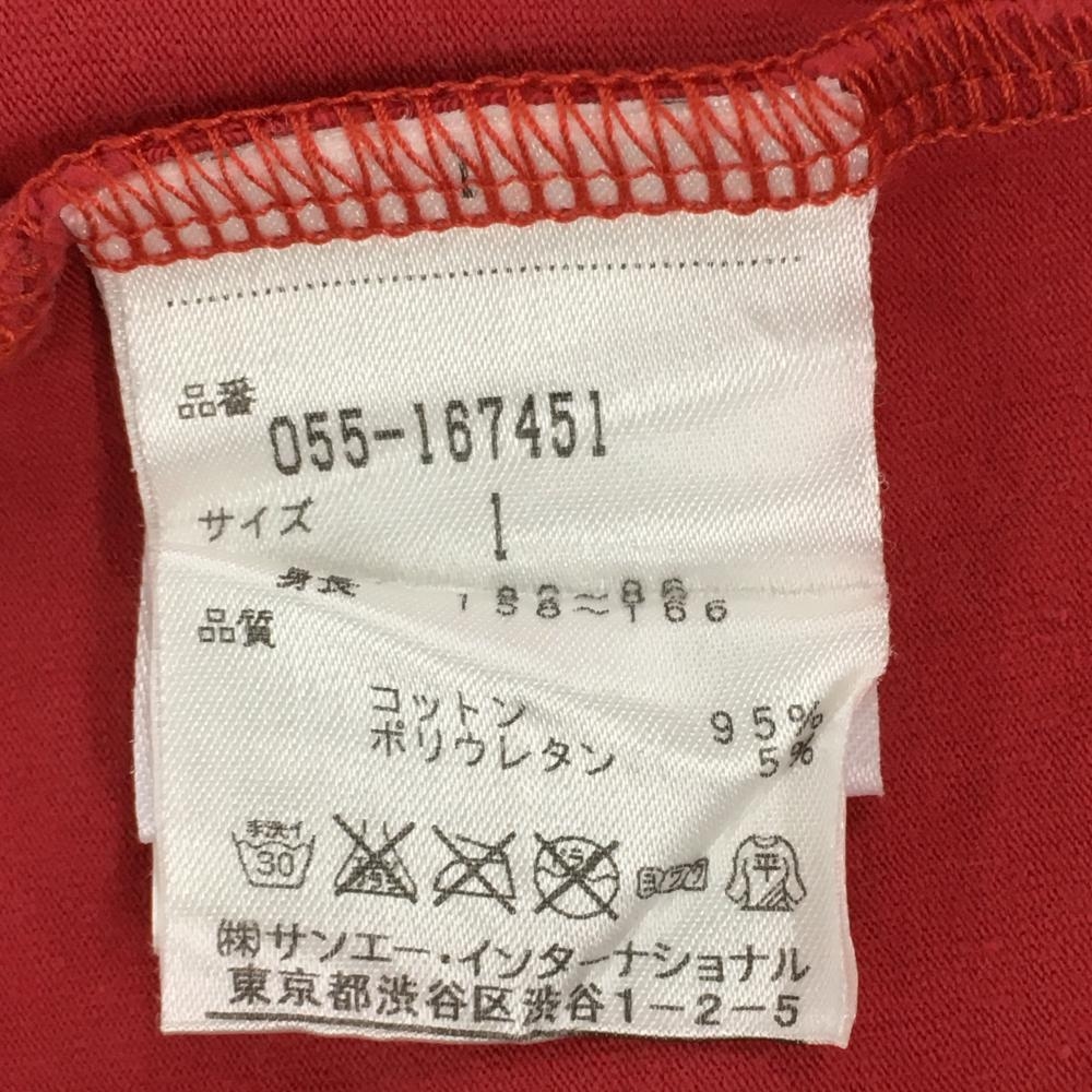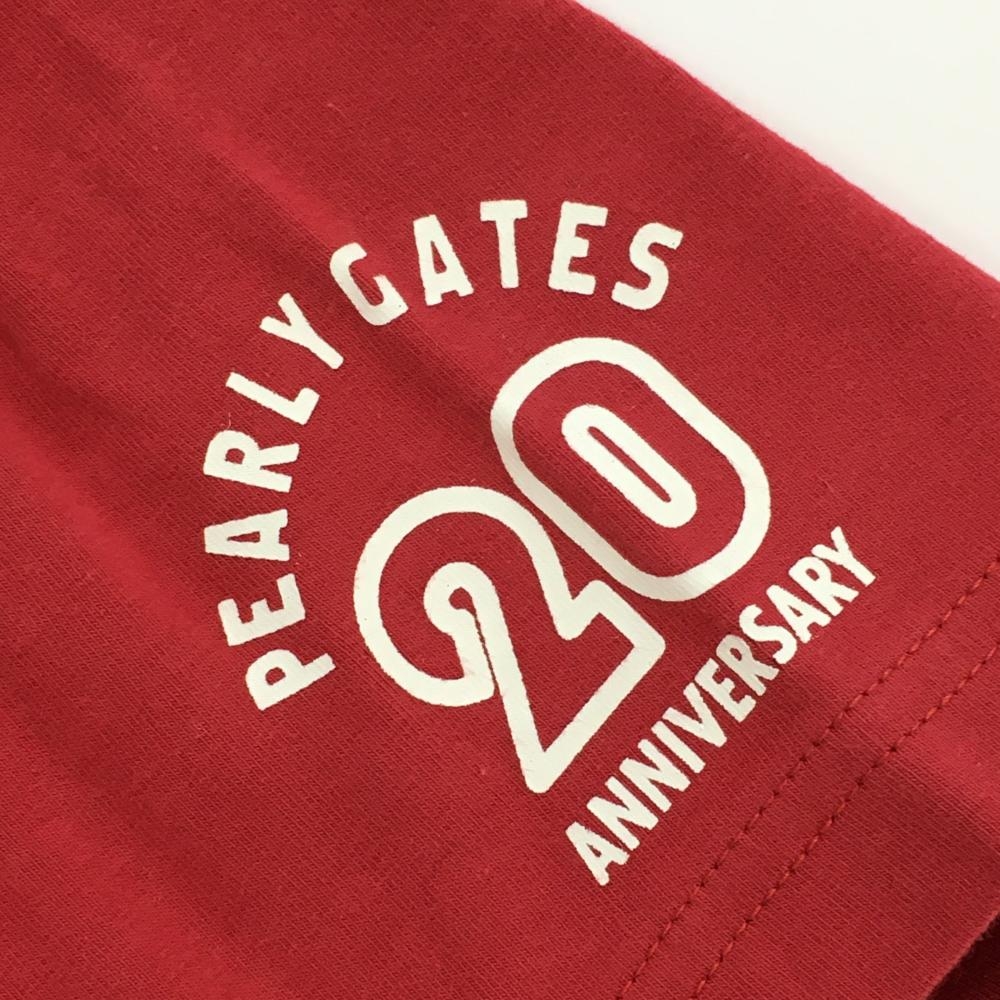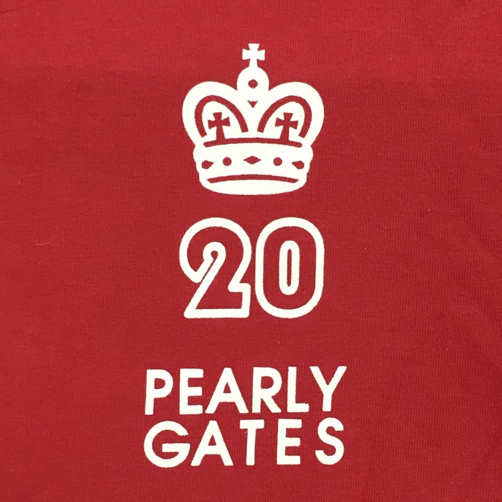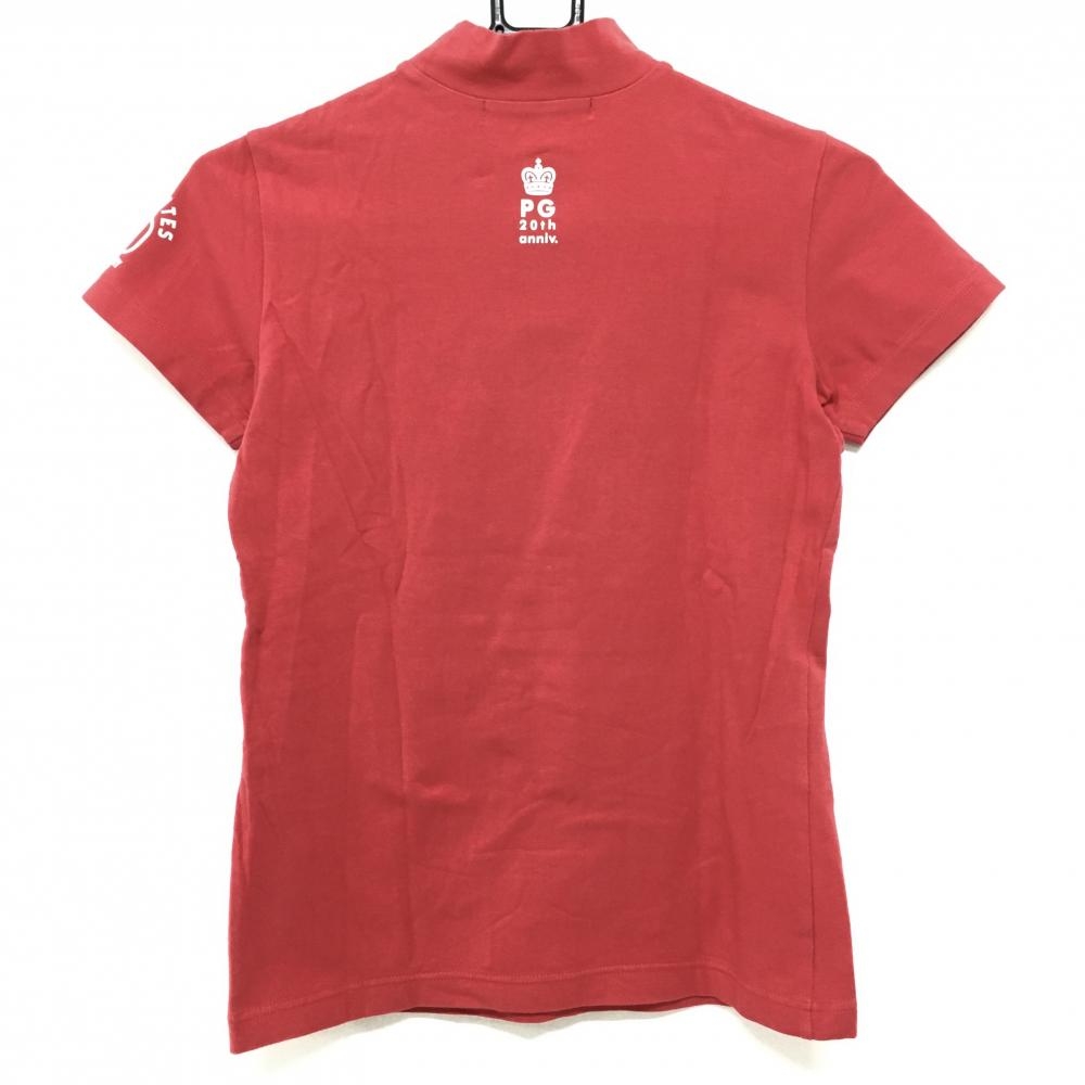 パーリーゲイツ 半袖ハイネックシャツ レッド×白 20周年 コットン混 レディース 1(M) ゴルフウェア PEARLY GATES