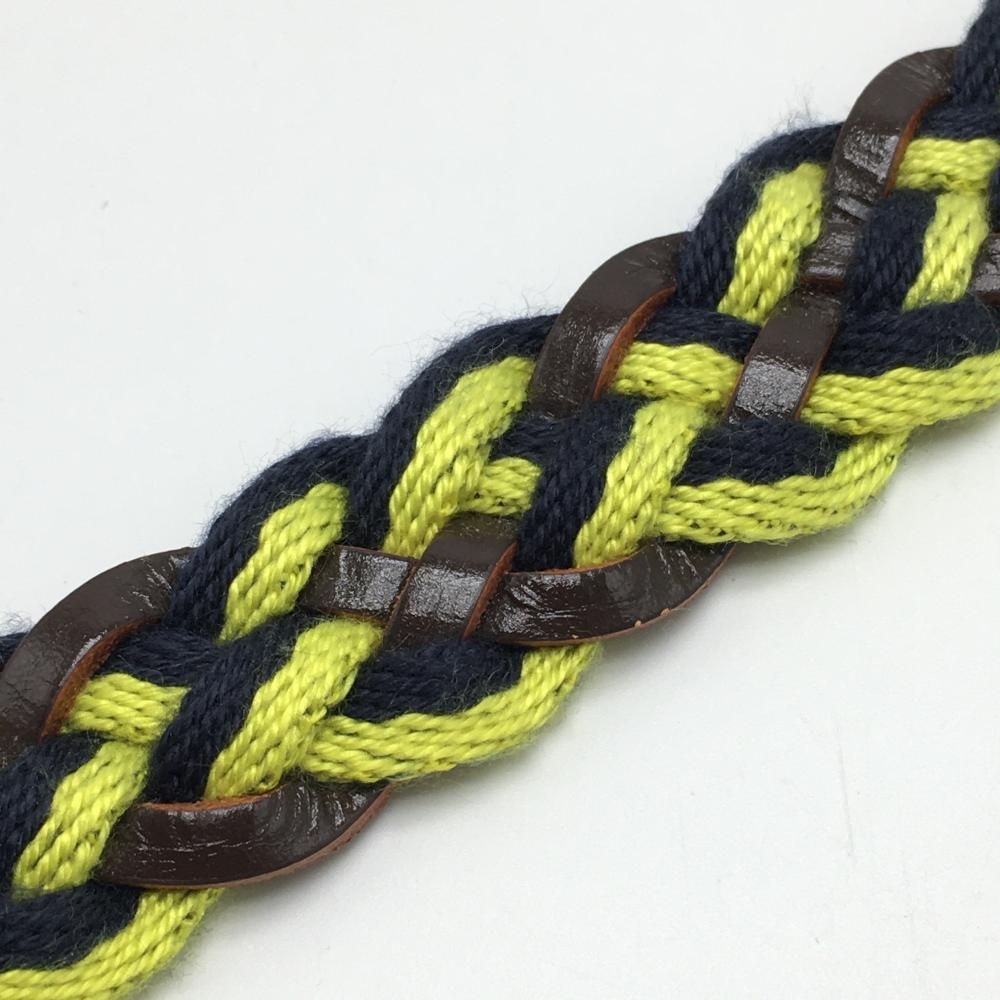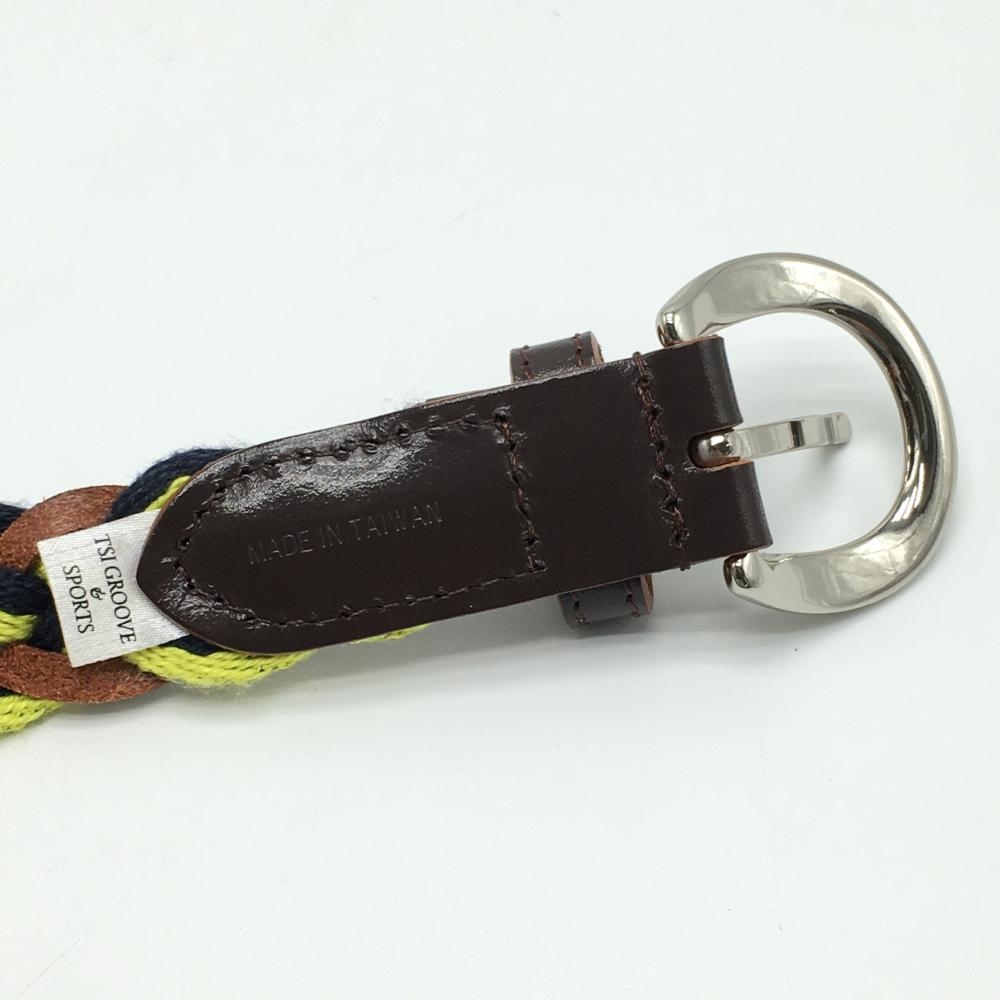 【超美品】ジャックバニー メッシュベルト イエロー×ネイビー 編み込み シルバーバックル レディース ゴルフウェア Jack Bunny