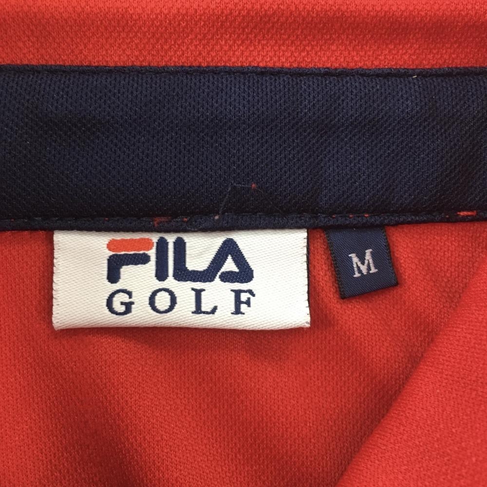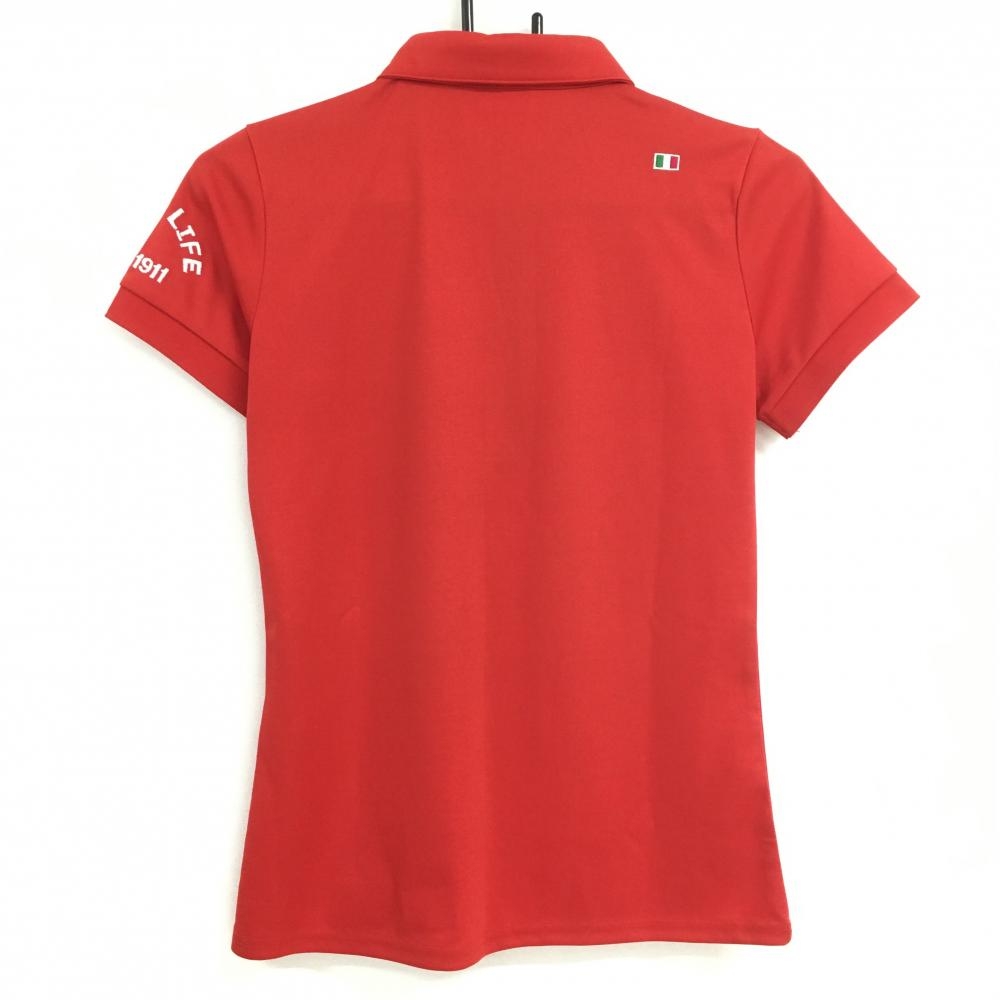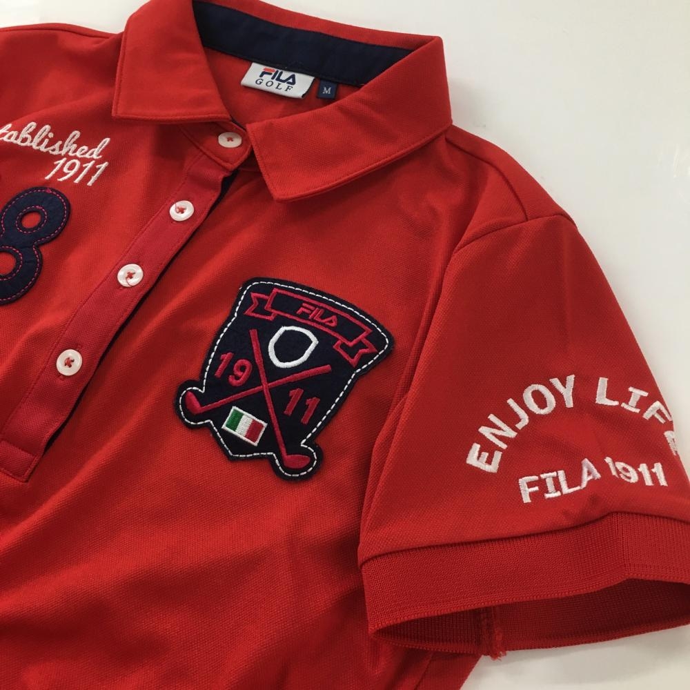 【超美品】フィラゴルフ 半袖ポロシャツ レッド×ネイビー ロゴワッペン 袖刺しゅう レディース M ゴルフウェア FILA GOLF