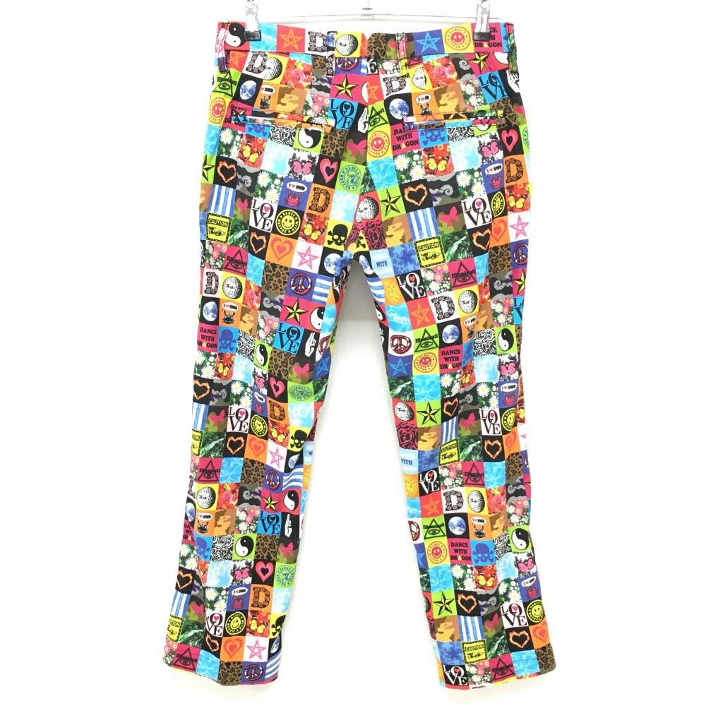 【超美品】ダンスウィズドラゴン パンツ マルチカラー 総柄 チビドラ ストレッチ メンズ 2(M) ゴルフウェア Dance With Dragon