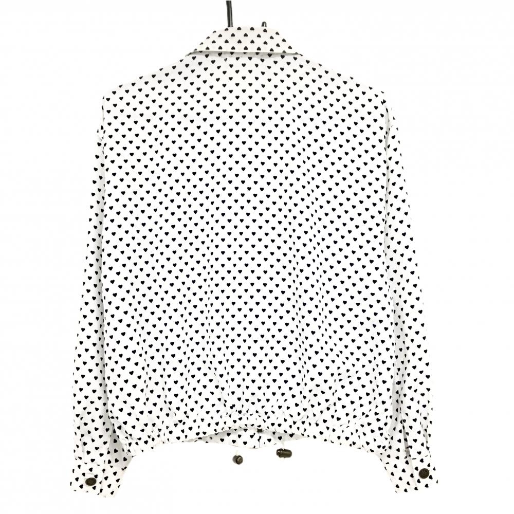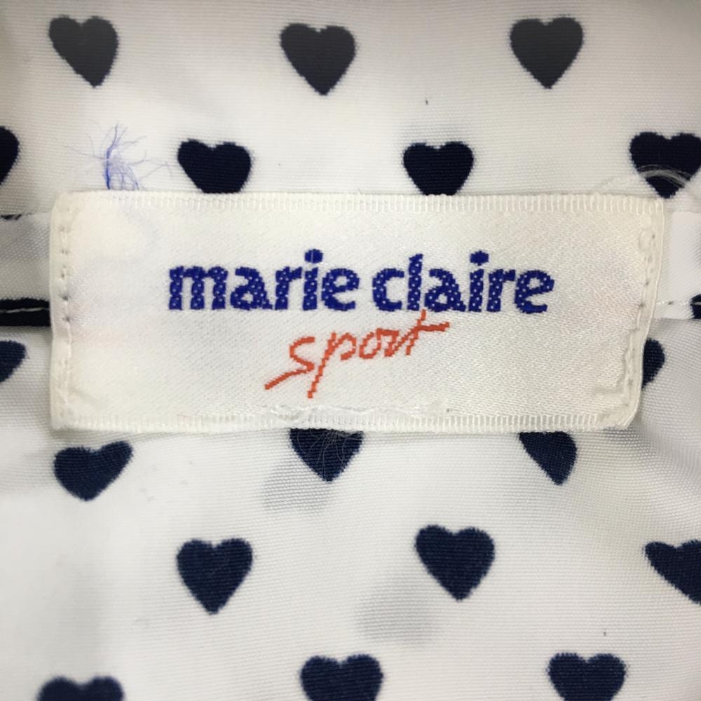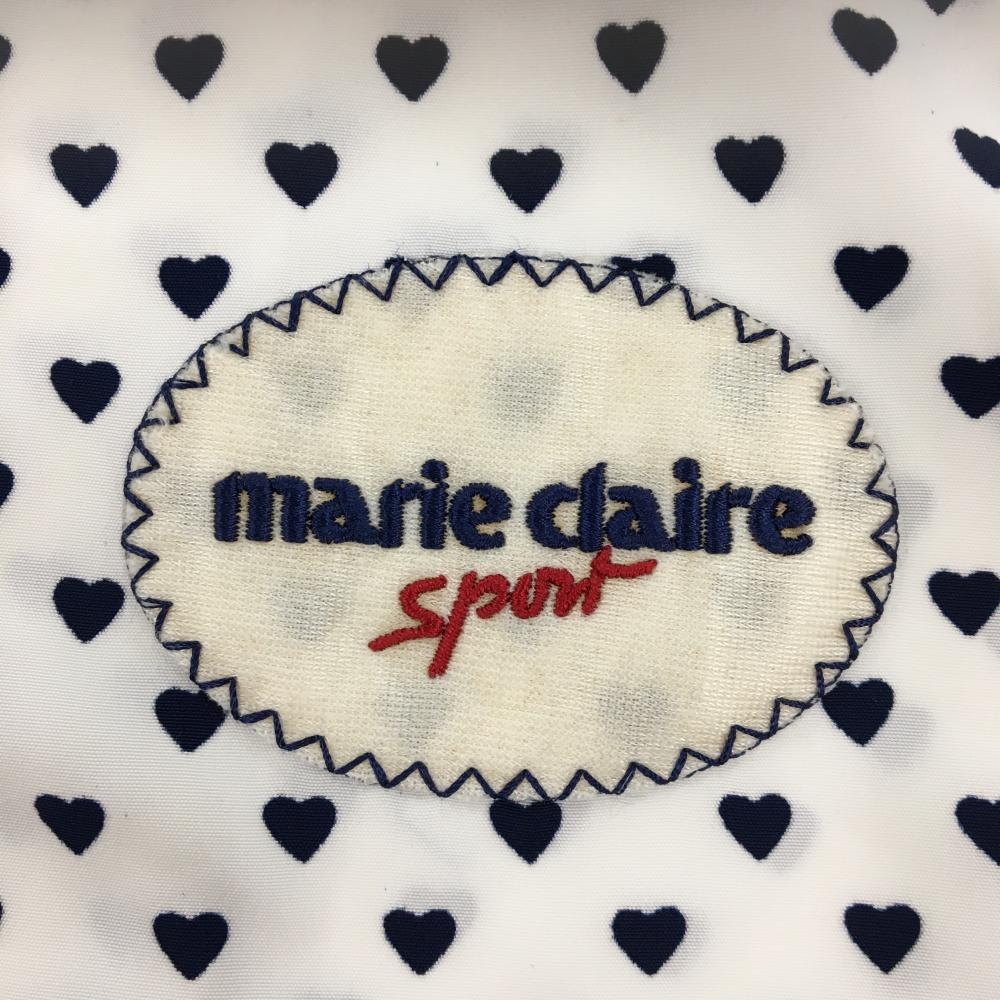 【超美品】マリクレール ジャケットブルゾン 白×ネイビー ハート総柄 裾ドローコード レディース ゴルフウェア marie claire