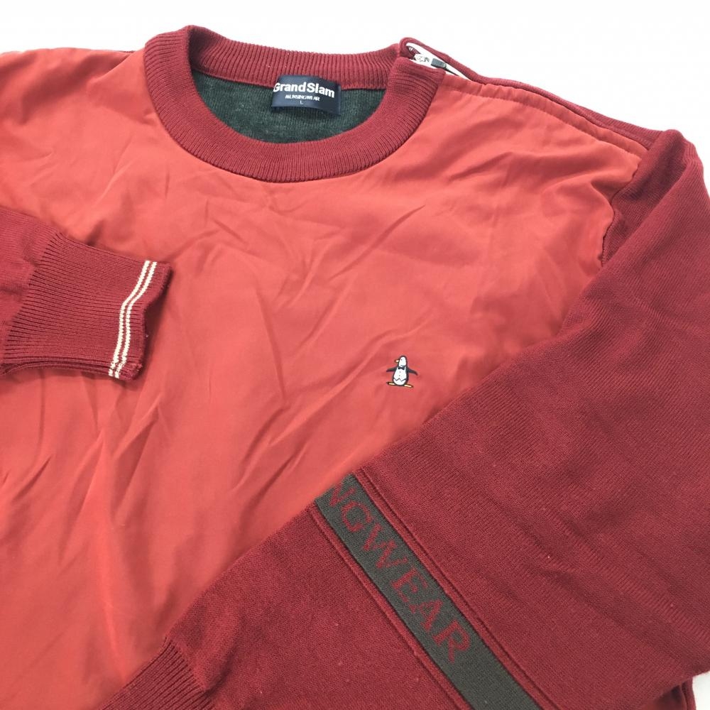 マンシングウェア 切替ニットスニード レッド 袖ライン 肩ジップ ウール混 メンズ L ゴルフウェア Munsingwear