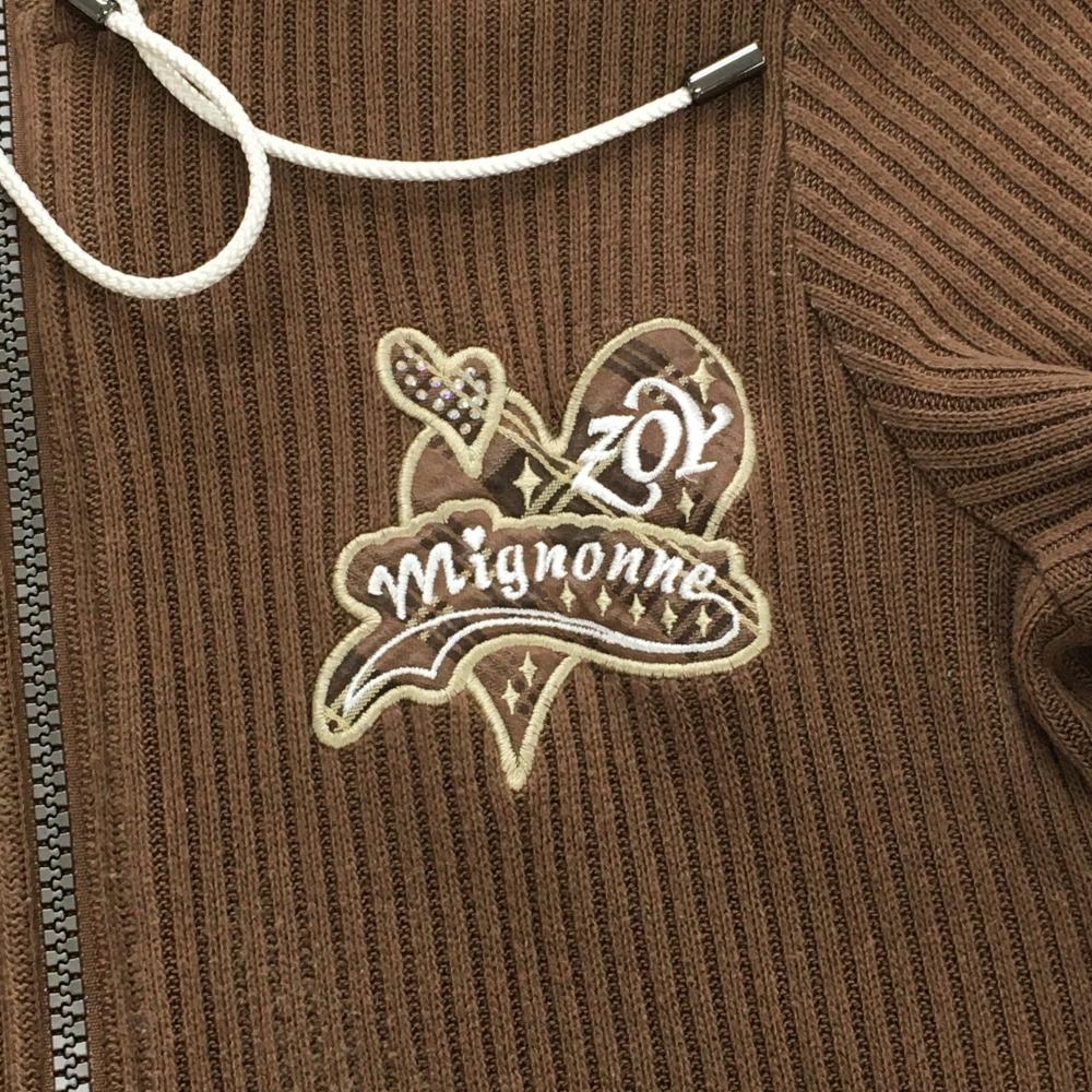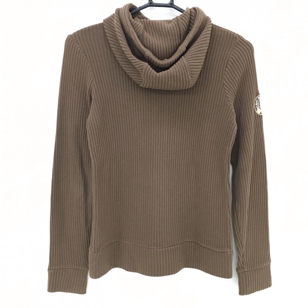 【美品】ゾーイ ニットジップパーカー ブラウン 胸元ロゴ ラインストーン レディース 38(M) ゴルフウェア ZOY