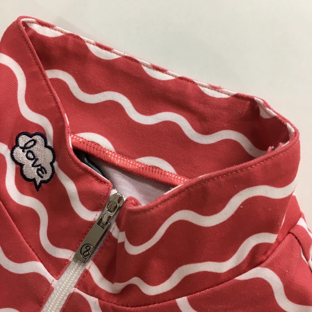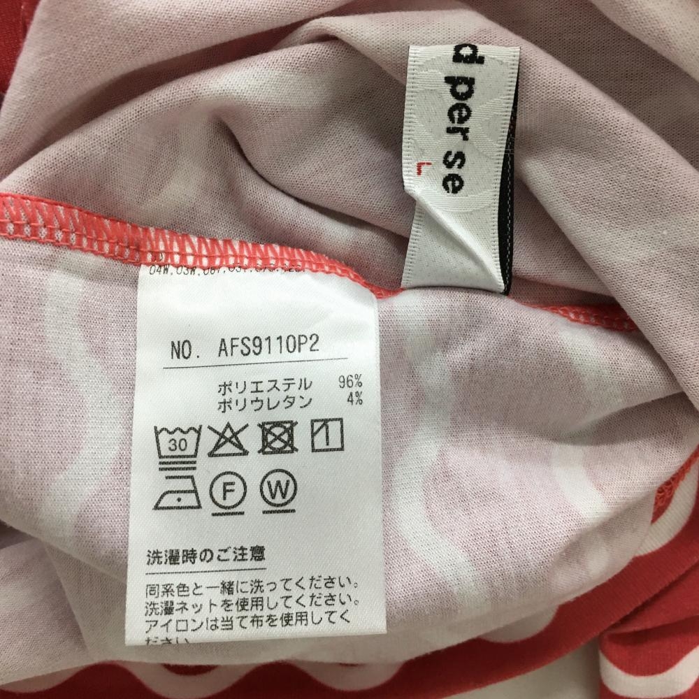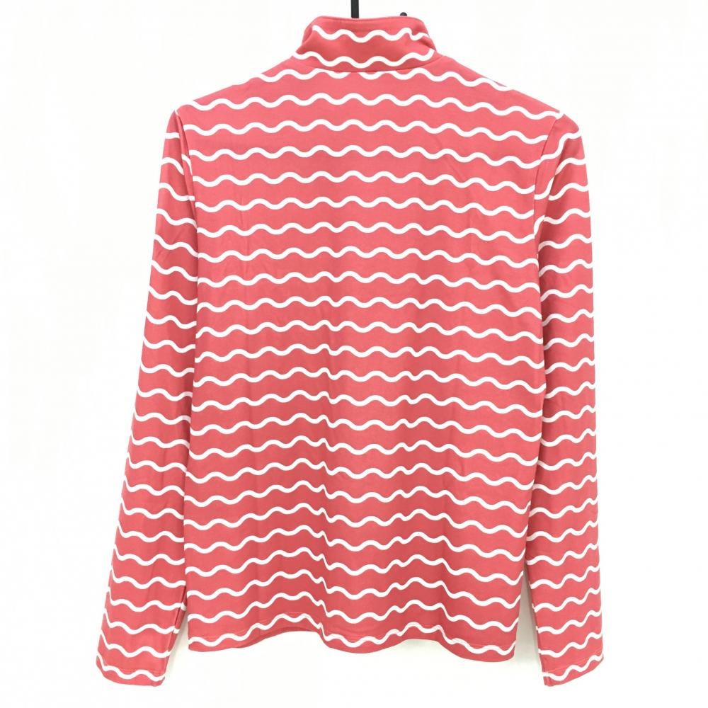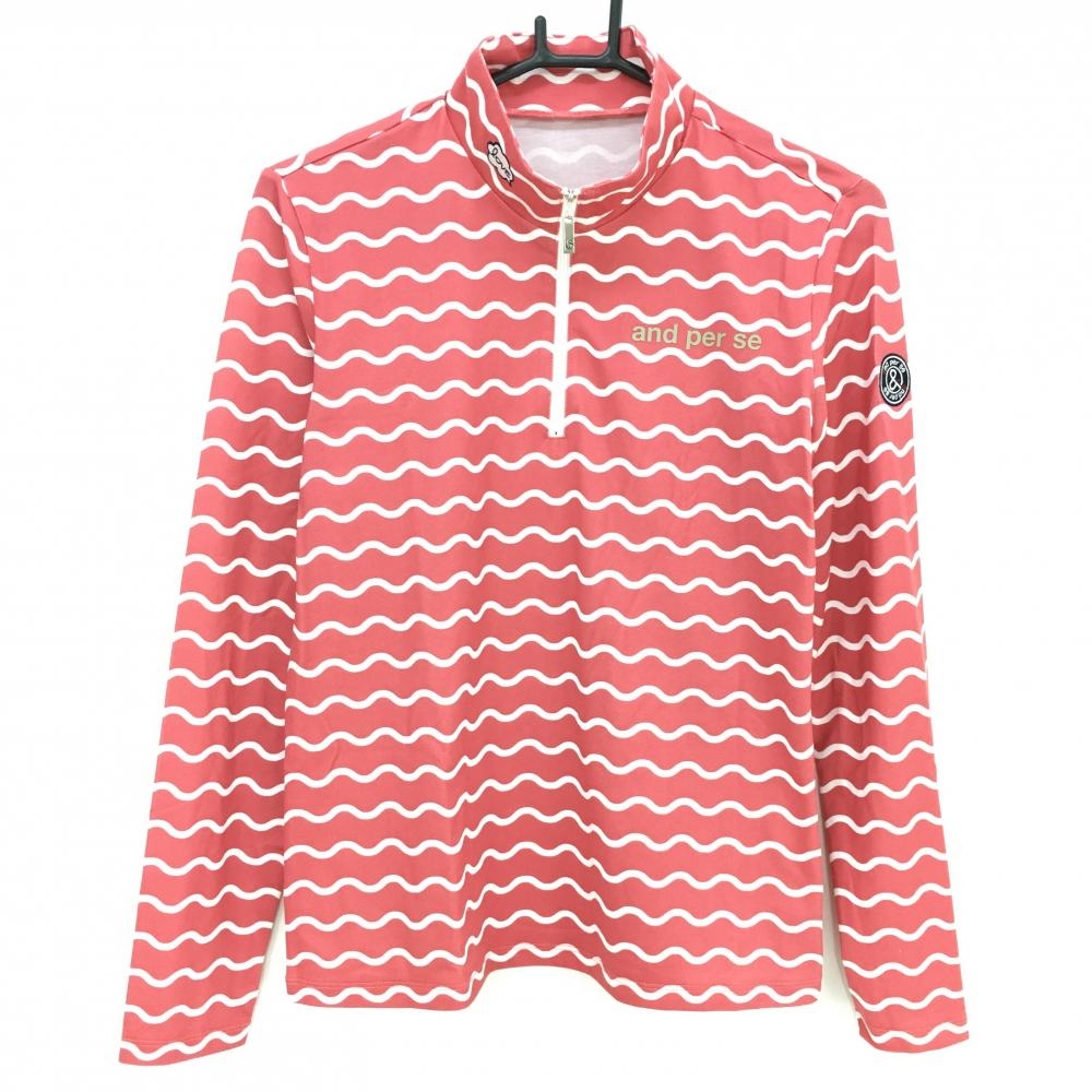 アンパスィ 長袖ハイネックシャツ レッド×白 なみなみボーダー ハーフジップ レディース L ゴルフウェア and per se