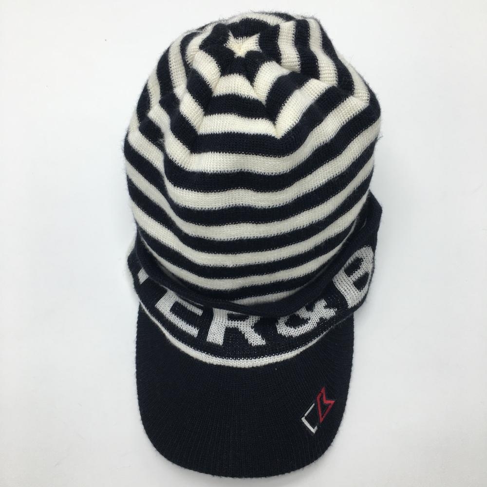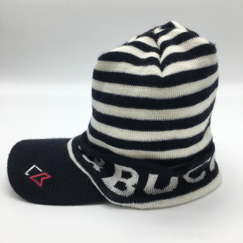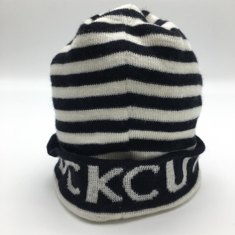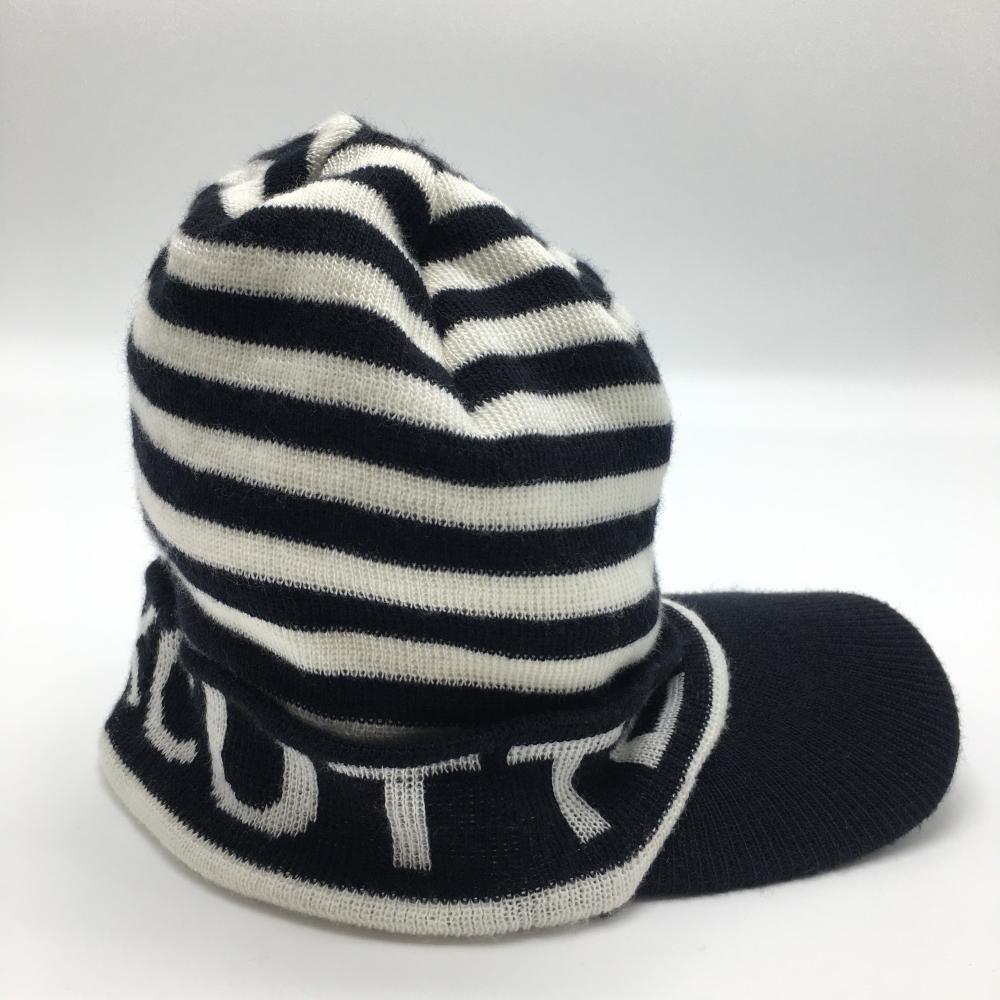 【美品】カッターアンドバック つば付きニット帽 黒×白 ボーダー F(57-59cm) ゴルフウェア CUTTER&BUCK