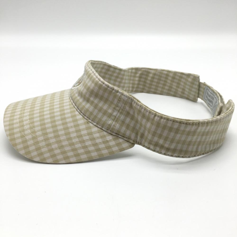 【超美品】ゾーイ サンバイザー グレージュ×白 チェック柄 ロゴ刺しゅう ゴルフウェア ZOY