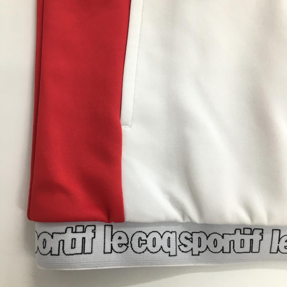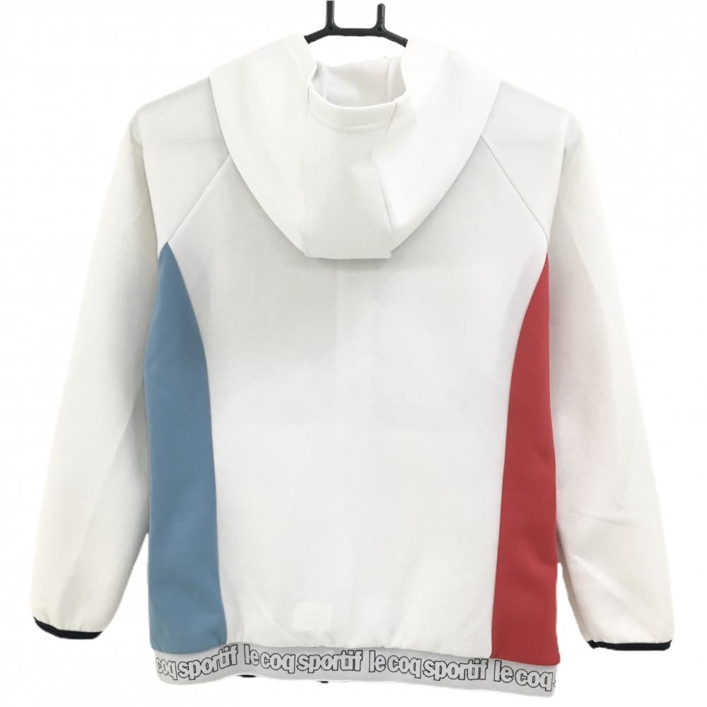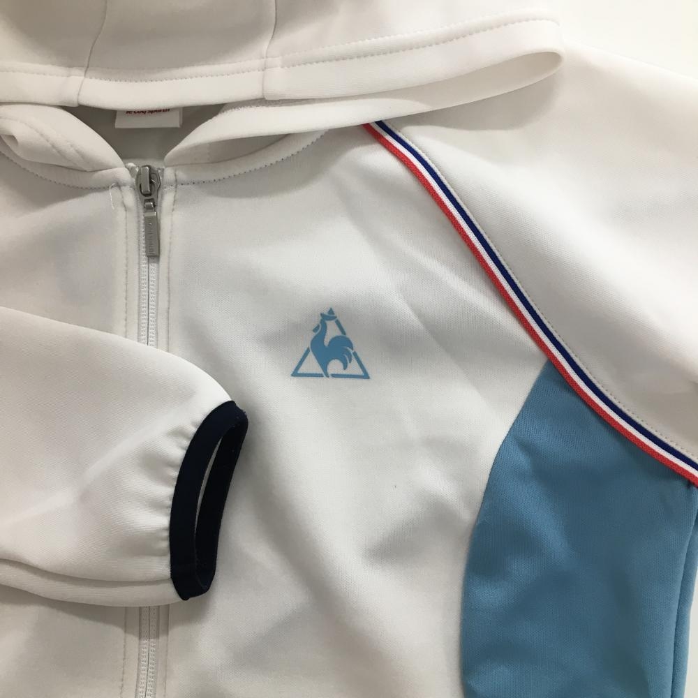 【美品】ルコック ジップパーカー 白×ライトブルー 裾ロゴ ブルゾン レディース S ゴルフウェア le coq sportif